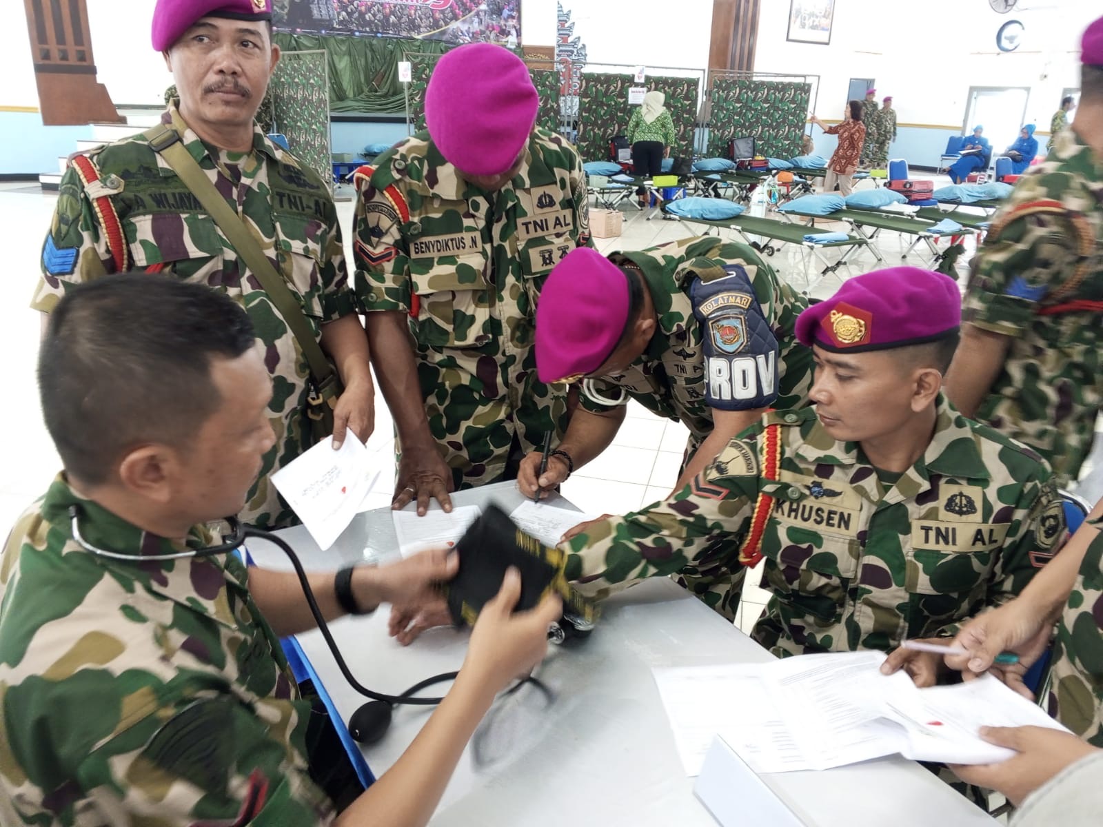 TNI AL, Dispen Kormar, (Surabaya). Untuk meningkatkan rasa kemanusiaan, Prajurit Petarung Puslatpasrat Korps Marinir mengikuti kegiatan donor darah dalam rangka rangkaian kegiatan Hari Ulang Tahun (HUT) Ke-79 Korps Marinir, bertempat di Balai Prajurit (Bapra) Lanmar Surabaya Jl. Opak, Kota Surabaya. Kamis (07/11/2024).
