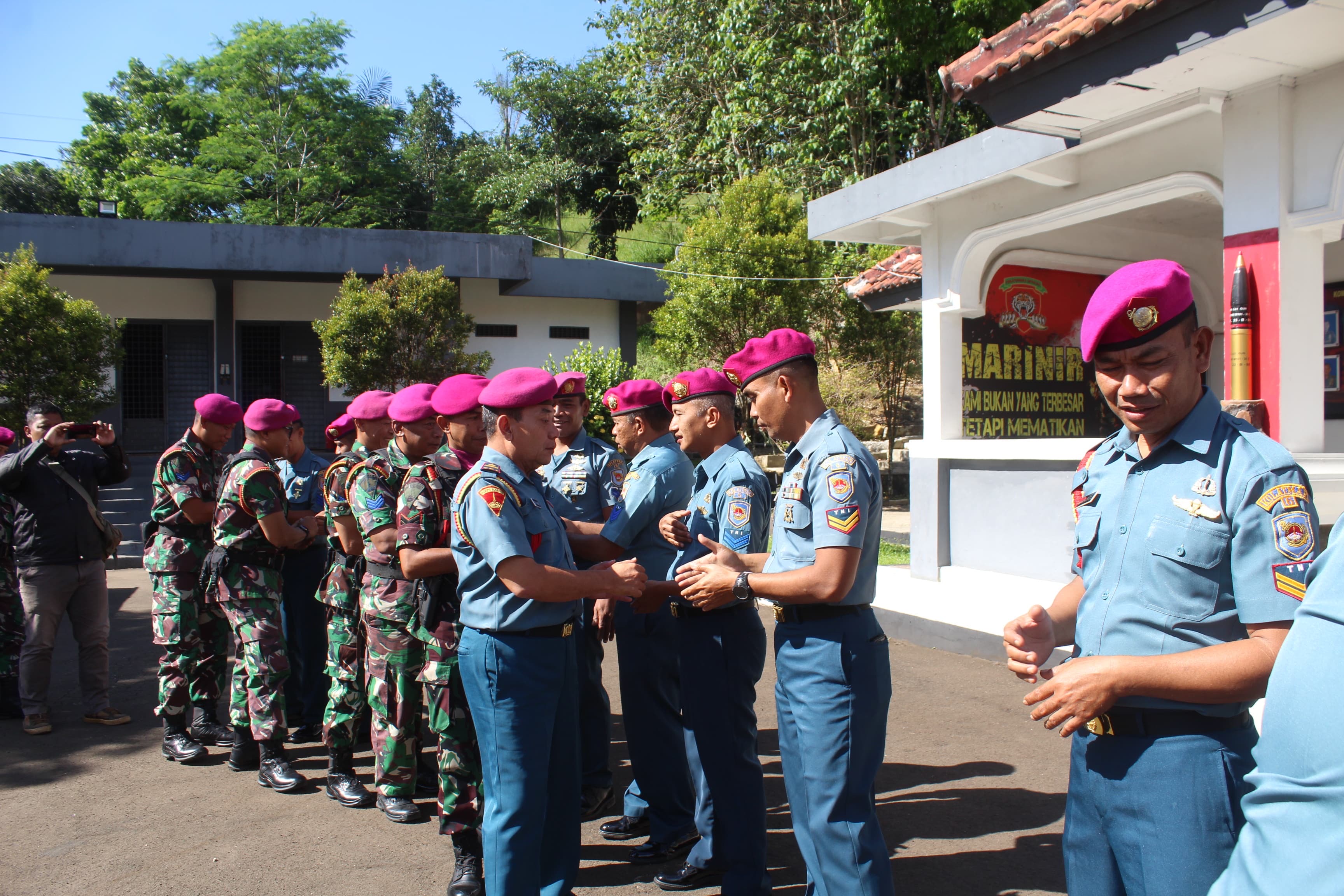 Dispen Kormar (Sukabumi) - Dipimpin Pasiops Mayor Marinir Mujahidin, prajurit Pusat Latihan Pertempuran (Puslatpur) Marinir 6 Antralina melaksanakan halal bihalal lebaran idul fitri 1446 Hijriah , bertempat di Mako Puslatpur Marinir 6 Antralina, Sukabumi, Jawa Barat. Selasa, (08/04/2025).