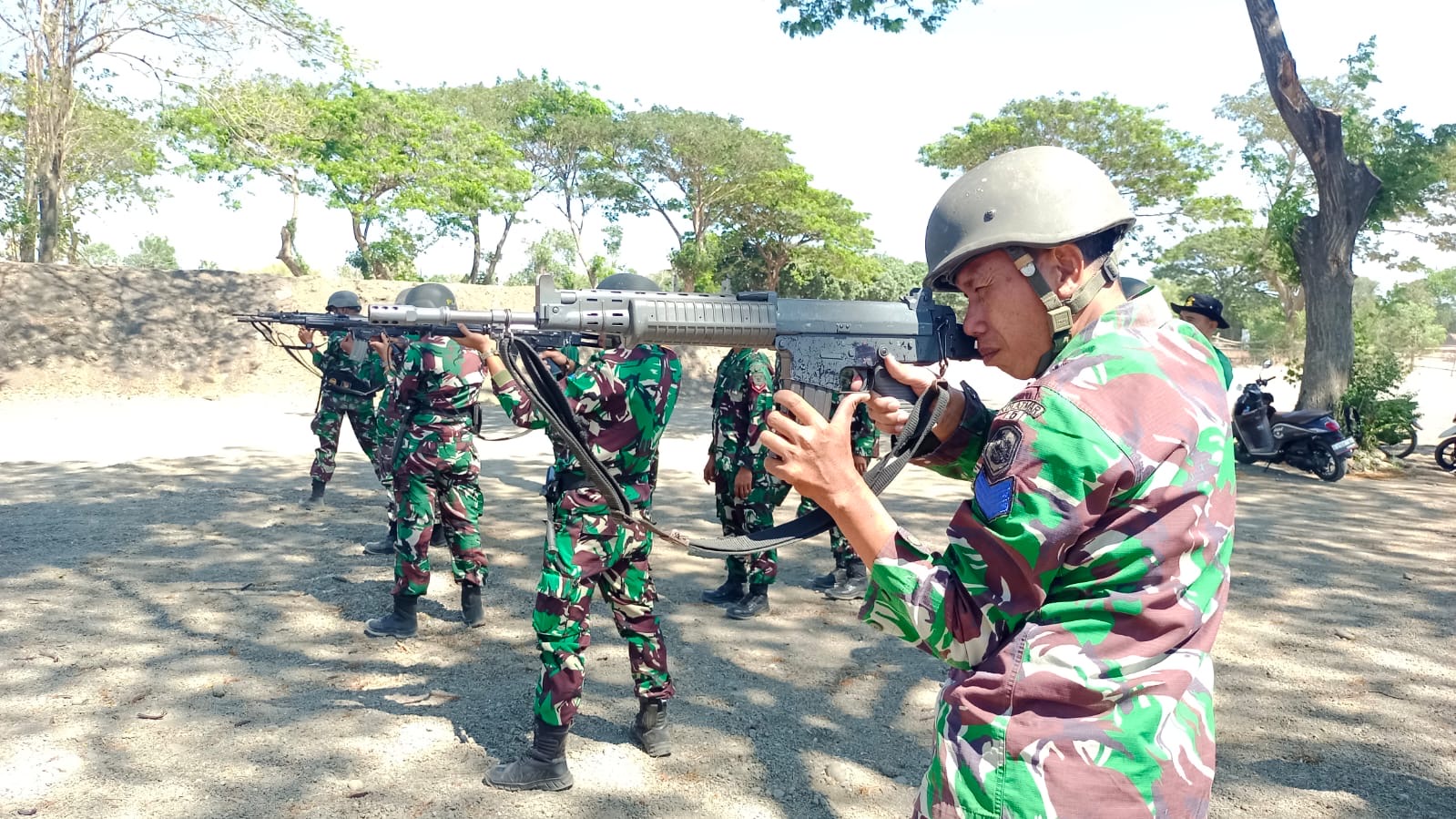 Kegiatan yang diawali dengan pengecekan personel dan material dilanjutkan dengan pemanasan dan melaksanakan menembak Senapan laras panjang jarak 100 meter dengan menggunakan 3 sikap, sikap tiarap, duduk dan berdiri