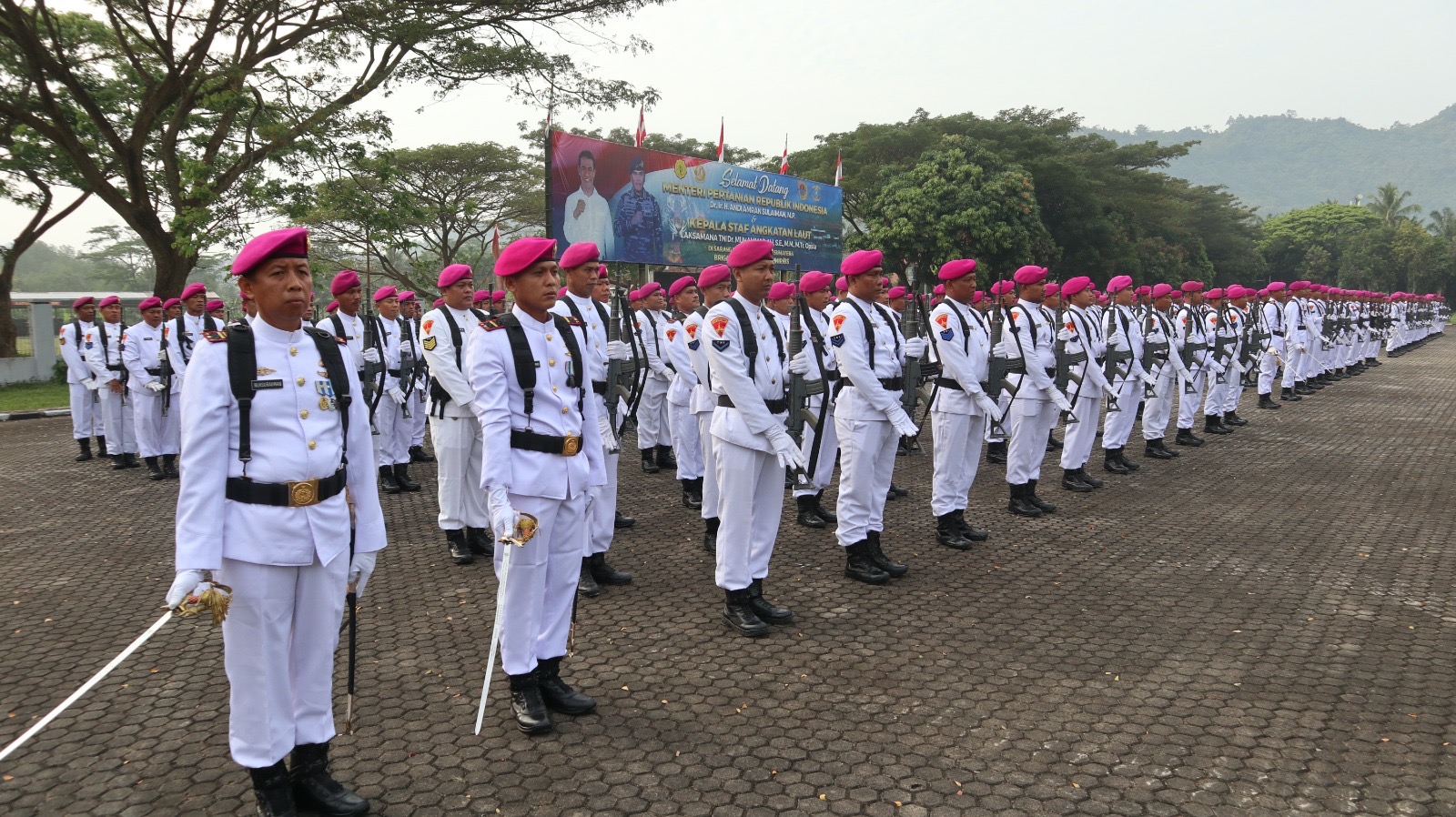 TNI AL, Dispen Kormar (Lampung) â Dalam rangka memperingati HUT Ke-79 Republik Indonesia, prajurit Puslatpurmar-8 Teluk Ratai turut serta mengikuti pelaksanaan upacara gabungan dengan prajurit Brigif 4 Mar/BS di Markas Komando Brigade Infanteri 4 Marinir/BS Lampung. Sabtu (17/08/2024).