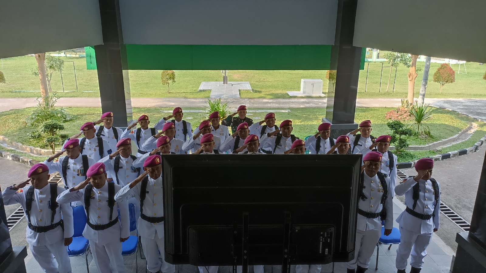Ditempat yang berbeda, secara bersamaan Prajurit Puslatpurmar-8 Teluk Ratai juga menyaksikan siaran langsung upacara HUT Kemerdekaan Ke-79 Republik Indonesia di Istana Merdeka Jakarta dan Istana Negara, Ibu Kota Nusantara secara Virtual.