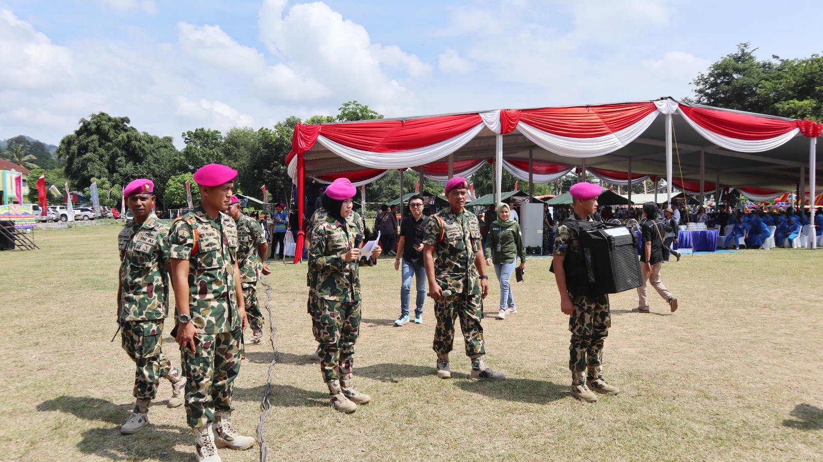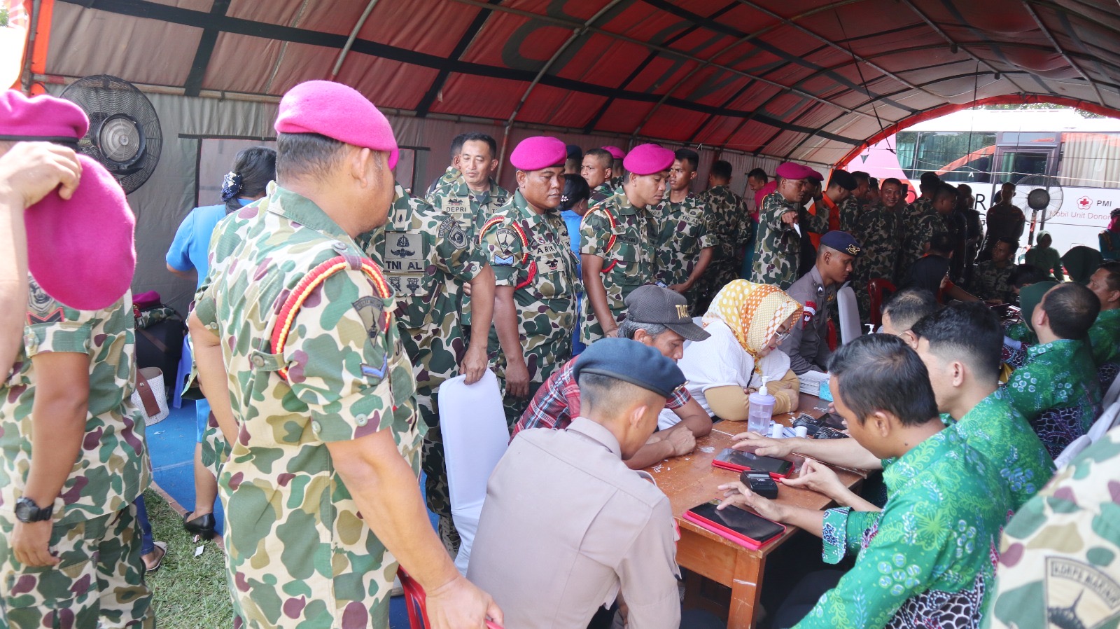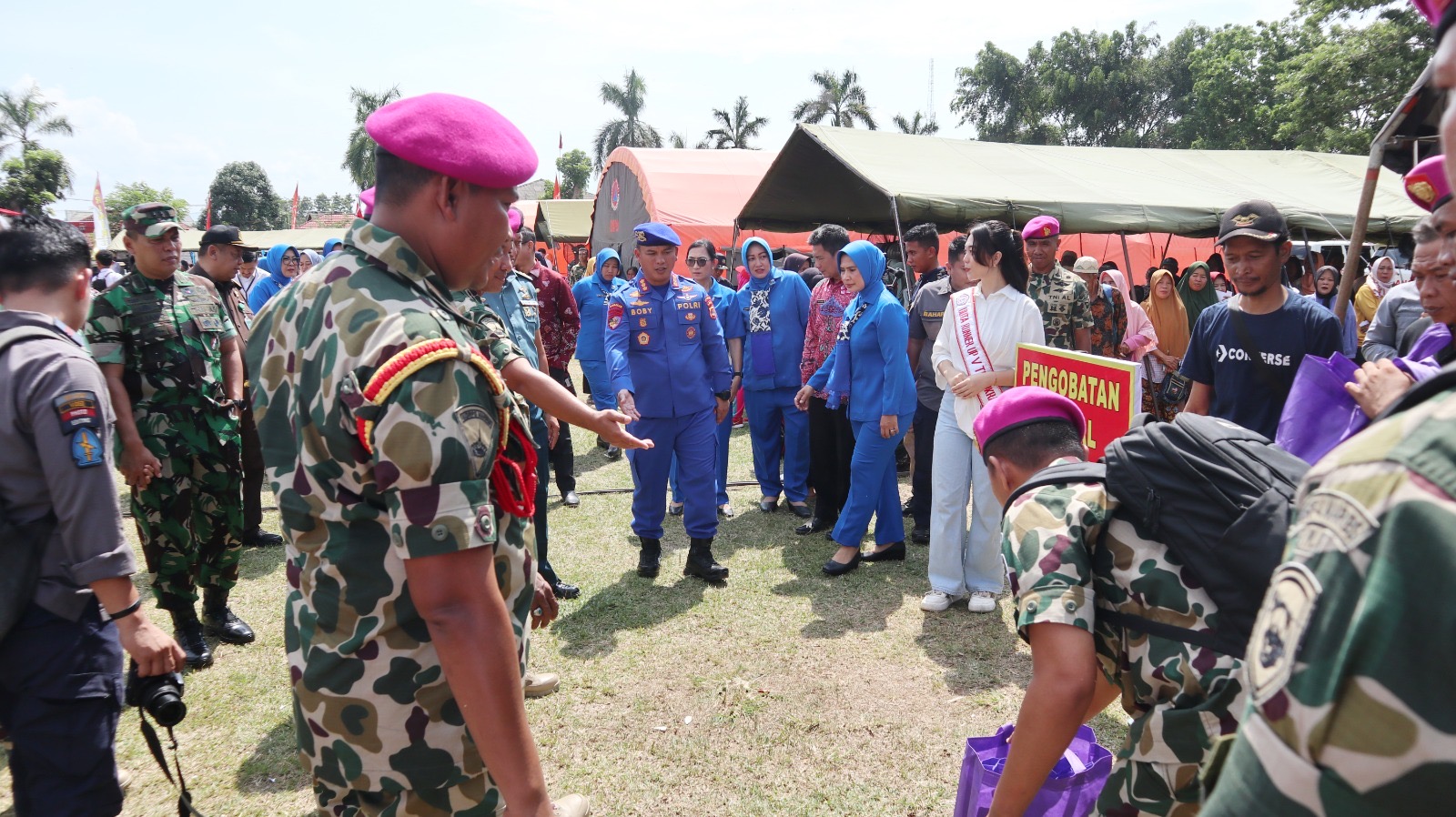 TNI AL, Dispen Kormar (Lampung) â Dalam rangka menyambut Hari Ulang Tahun (HUT) ke-79 Korps Marinir, prajurit Puslatpurmar-8 Teluk Ratai turut serta berpartisipasi dalam menyukseskan kegiatan bakti sosial dan kesehatan yang diselenggarakan oleh jajaran Korps Marinir wilayah Lampung di lapangan Kridayuana, Desa Hanura, Kabupaten Pesawaran-Lampung. Jumat (08/11/2024)