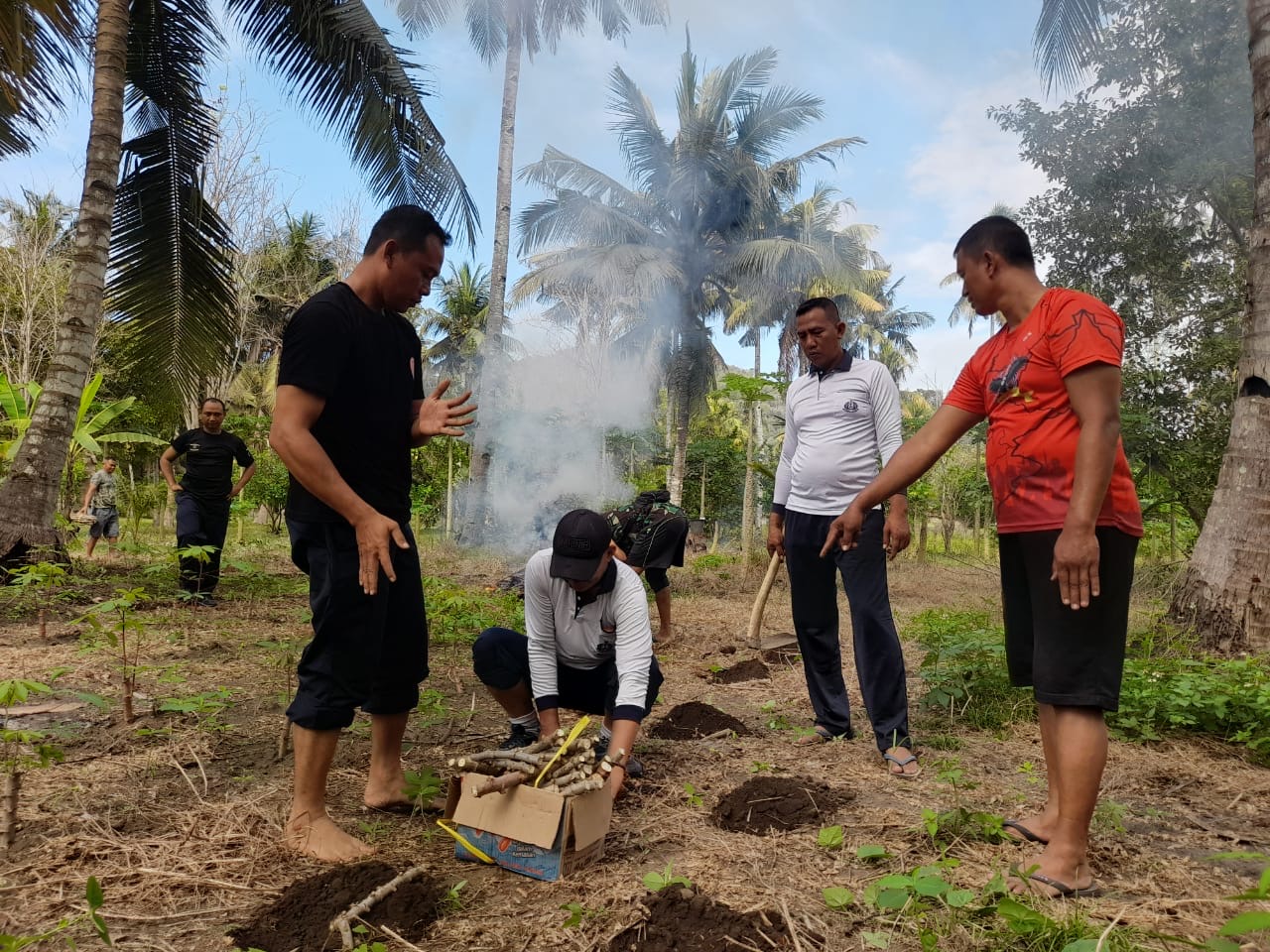 Dispen Kormar (Banyuwangi)- Untuk meningkatkan program ketahannan pangan di lingkungan Mako Puslatpurmar 7 Lampon, Selasa (30/07/2024), di laksanakan penanaman pohon singkong sebanyak 2.500 batang bibit singkong dengan menggunakan area lahan seluas seperempat hektar.