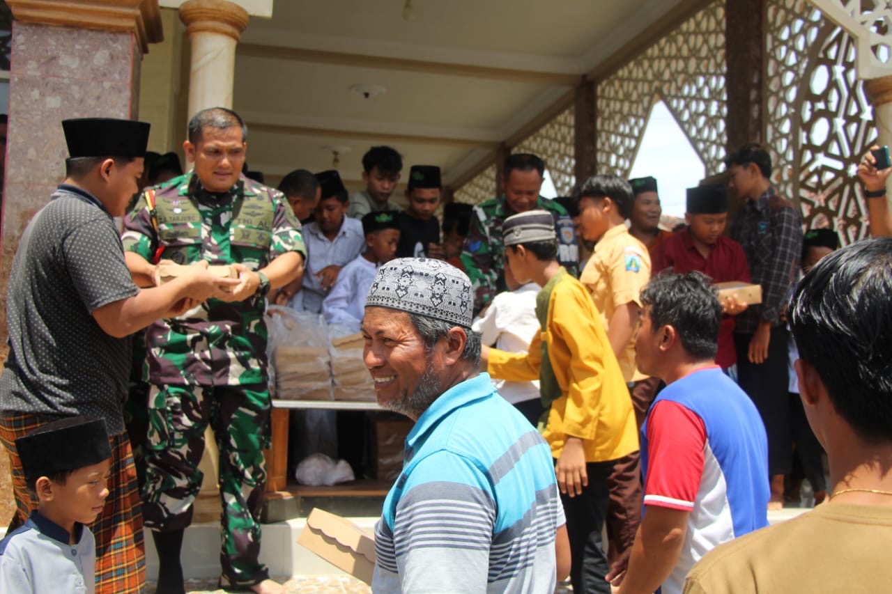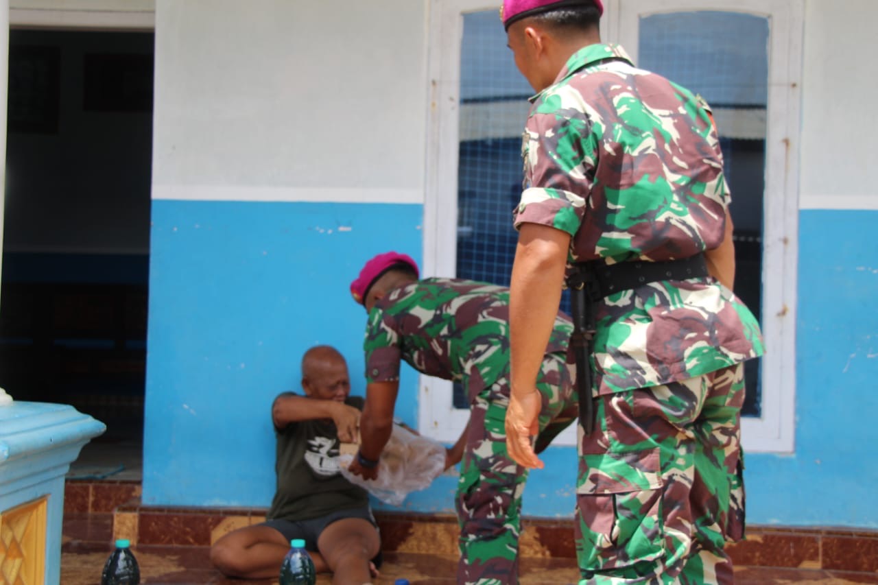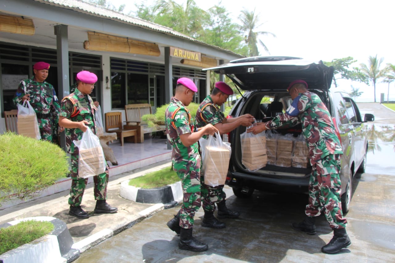 Dispen Kormar (Banyuwangi). Saling berbagi saling peduli, dalam kegiatan Jum'at berkah yang di adakan Puslatpurmar 7 Lampon di Masjid Baitul Maqfur Kampung Baru, perkampungan nelayan Pantai Lampon Banyuwangi. Jum'at 10/01/2025.