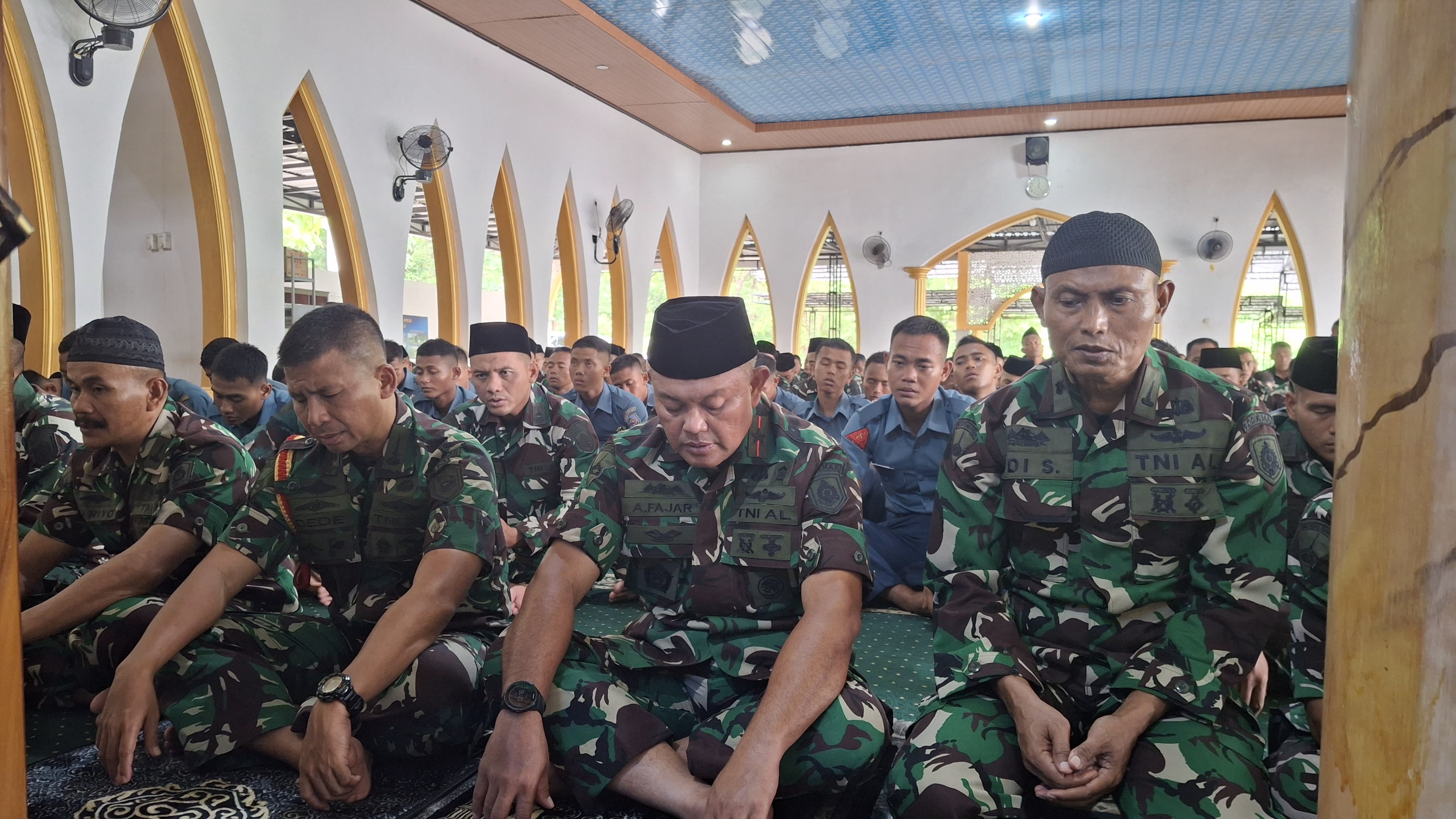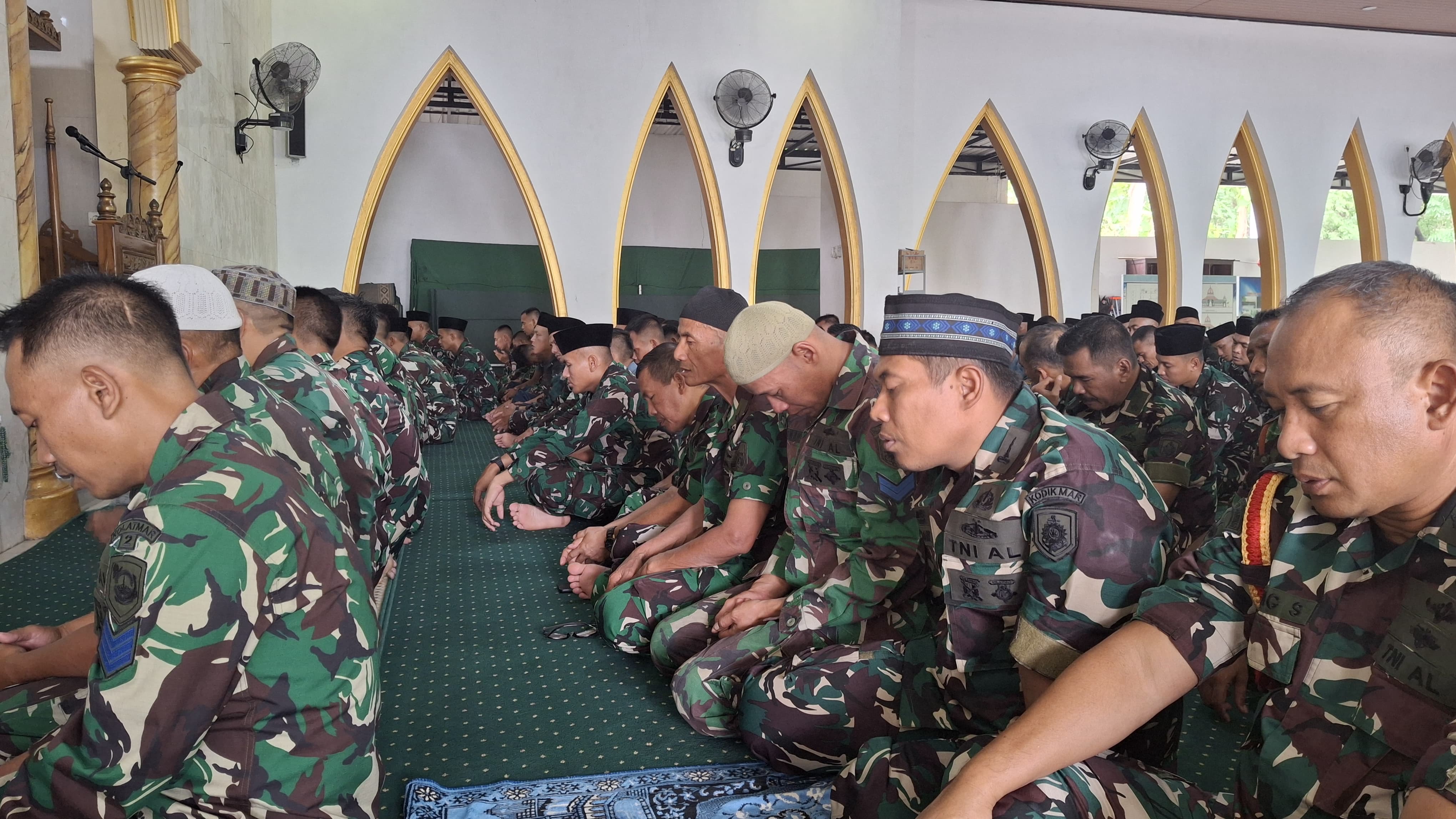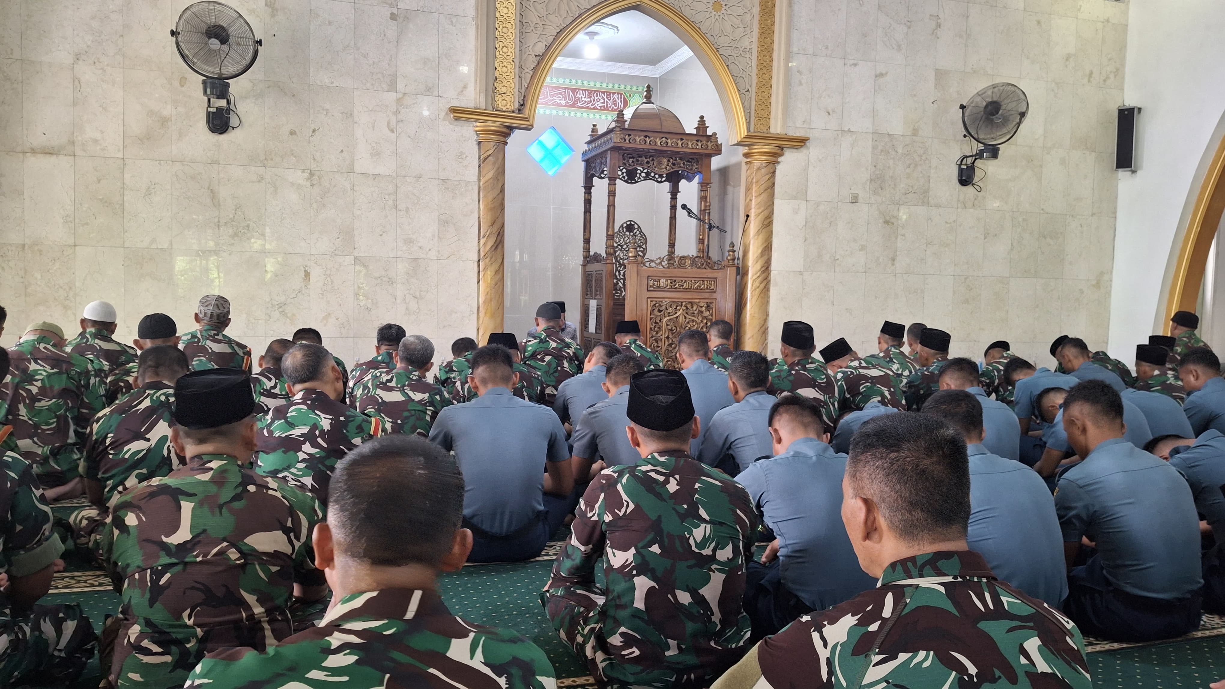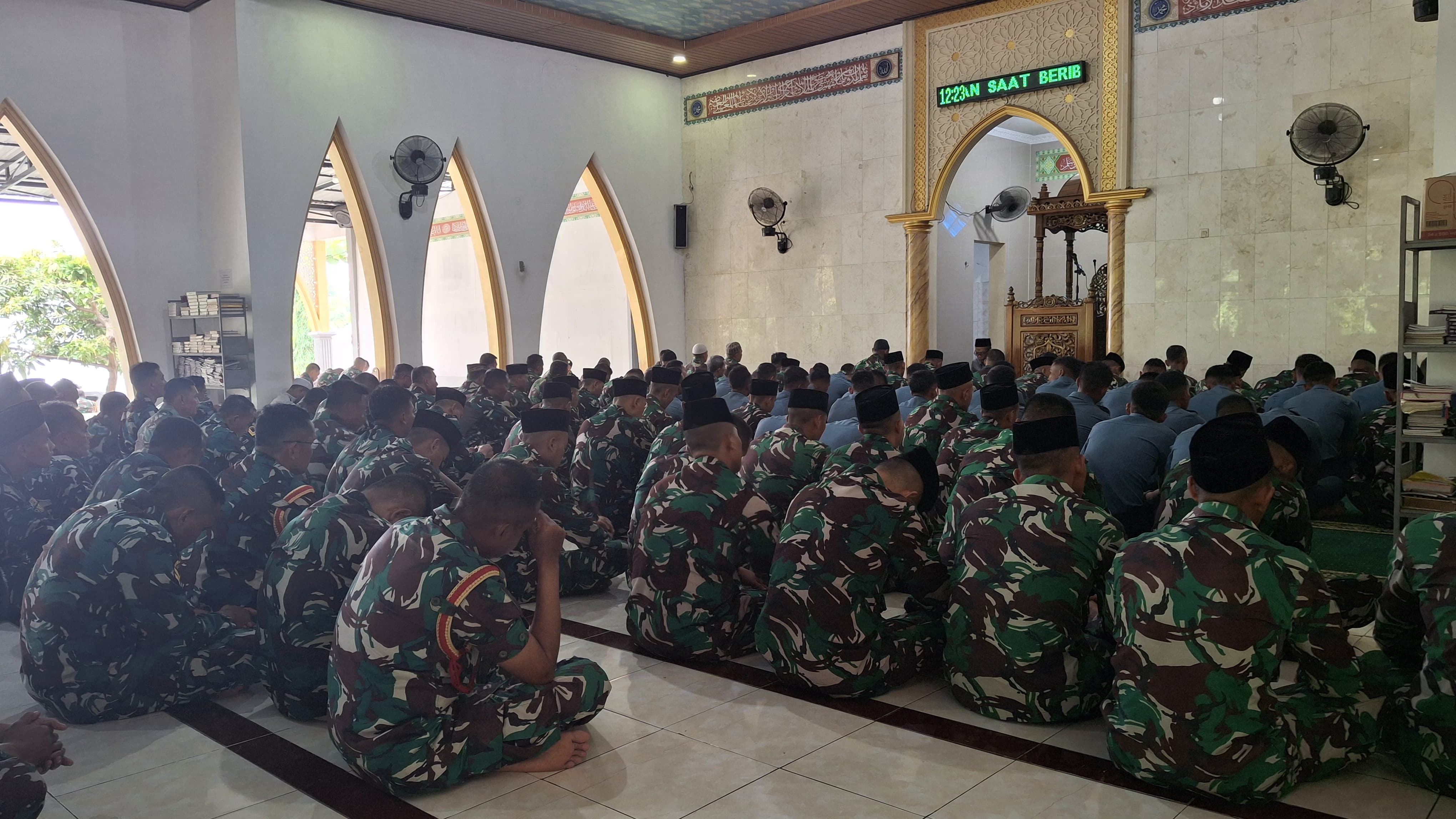 Kegiatan diawali dengan Sholat Jum'at berjamaah dilanjutkan pembacaan ayat-ayat suci Al-Quran, istighosah dan Do'a bersama yang dipimpin oleh Letkol Laut (KH) M. Soleh. S.A.g., Dalam suasana penuh khimat dan kekhusyukan, para prajurit memunajat memanjatkan doa agar di Hari Dharma Samudra tahun 2025 ini yang membawa keberkahan, kedamaian, dan kejayaan bagi TNI AL dan bangsa Indonesia.