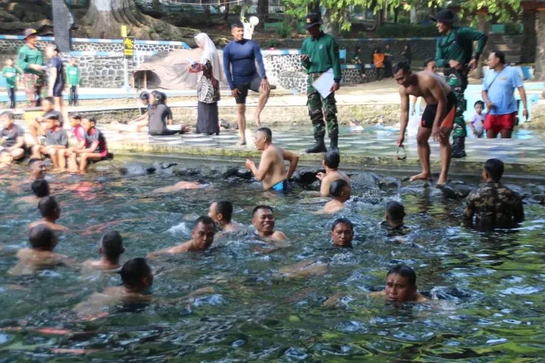 Dispen Kormar (Pasuruan). Di hari ketiga rangkaian kegiatan Latihan Perorangan Dasar (LPD), personel Pusat Latihan Tempur Marinir (Puslatpurmar) 3 Grati melaksanakan kegiatan Renang Triwulan I TA 2025. Kegiatan ini dipimpin langsung oleh Wadan Puslatpurmar 3 Grati, Mayor Marinir Supriadi, bertempat di Pemandian Alam Banyubiru, Winongan, Pasuruan. Jumat (21/2/2025).