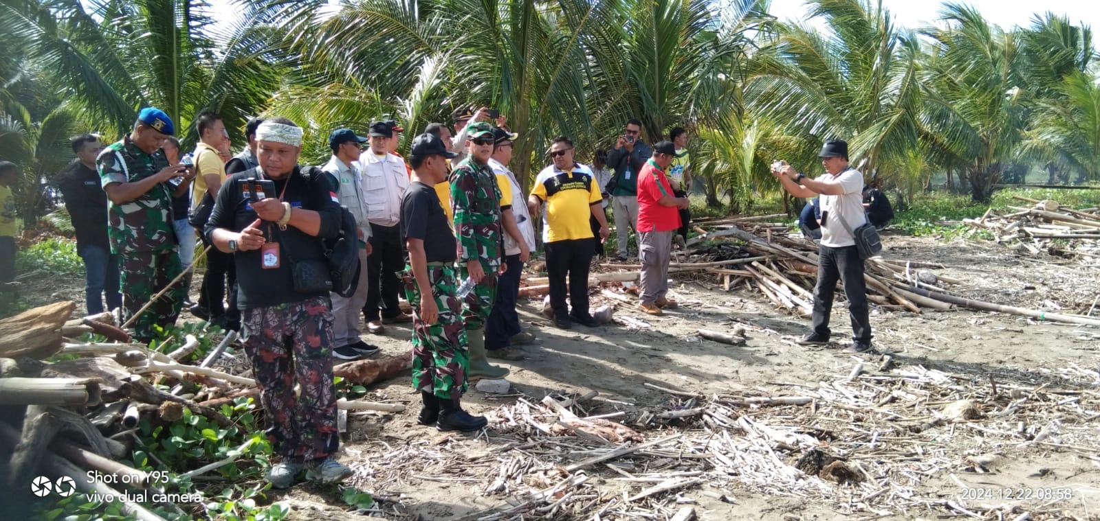 Dispen Kormar (Sukabumi) - Pusat Latihan Pertempuran (Puslatpurmar) 6 Antralina diwakili Mayor Marinir Jemi Karrel Warongan menghadiri kegiatan pemulihan pasca bencana yakni Beach Clean Up (bersih-bersih pantai) bersama Pemerintah Kabupaten (Pemkab) Sukabumi. Minggu, (22/12/2024),