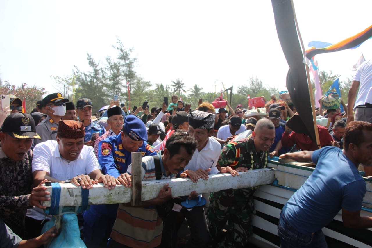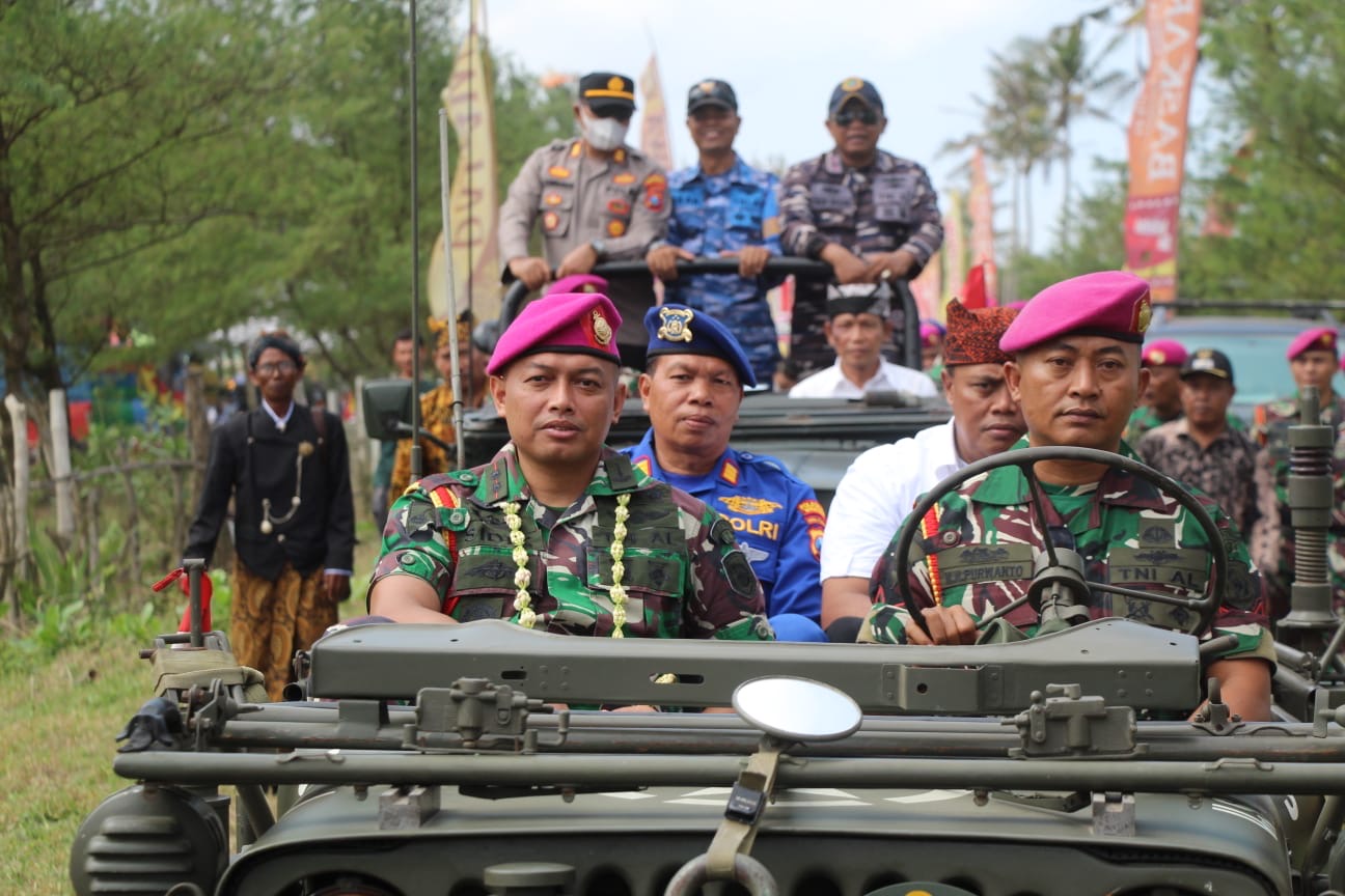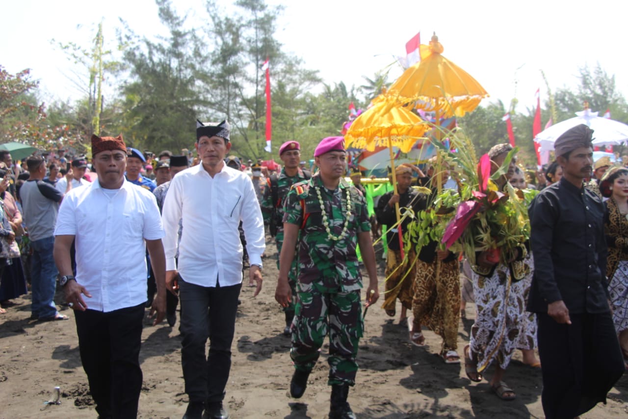 Dispen Kormar (Banyuwangi). Pusat Latihan Pertempuran Marinir (Puslatpurmar) 7 Lampon mendukung sepenuhnya kegiatan masyarakat nelayan pantai Lampon untuk menyelenggarakan prosesi petik laut dan larung sesaji di Pantai Lampon Banyuwangi, Minggu (07/07/2024).