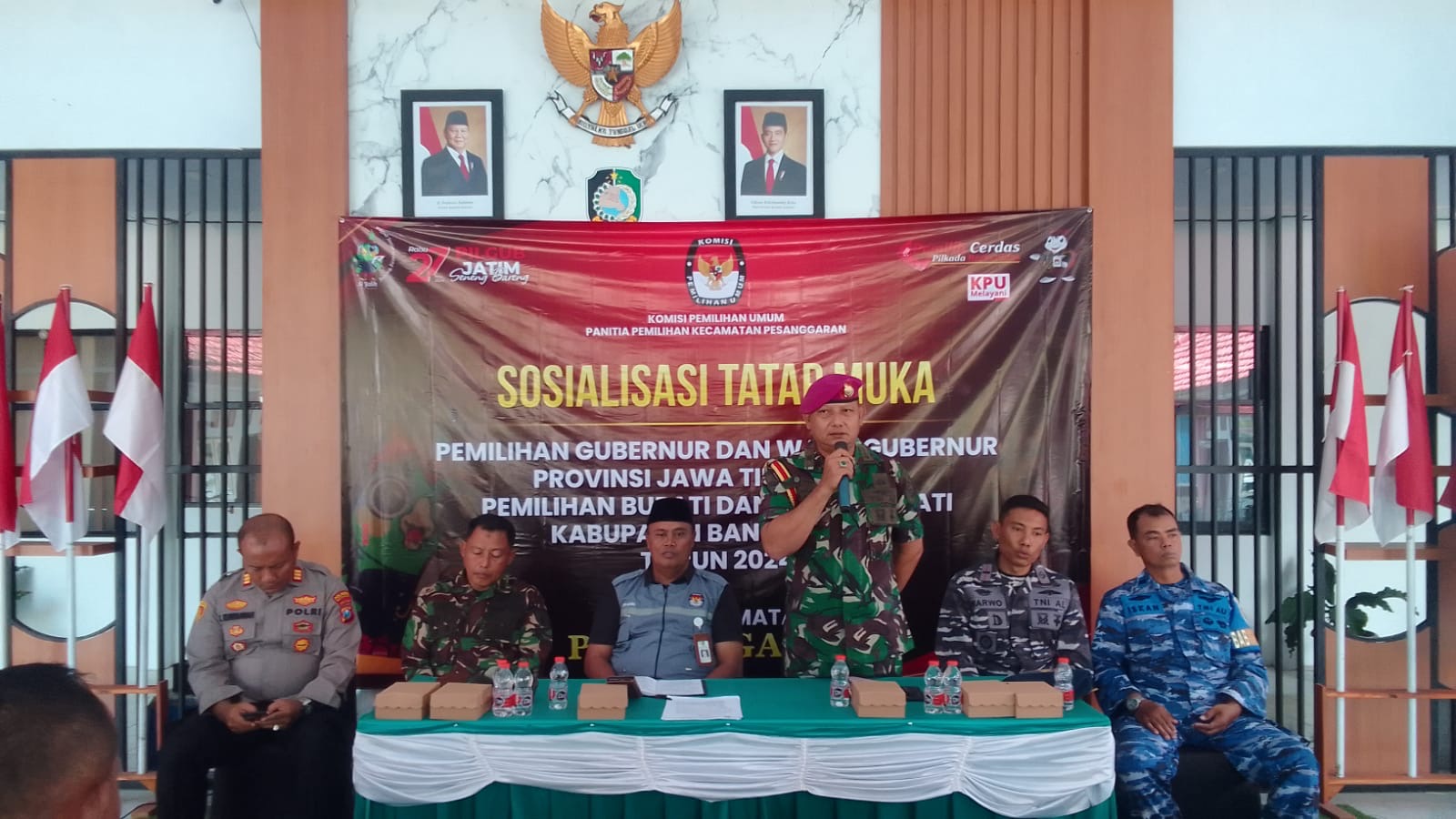 Dispen Kormar (Banyuwangi). Komandan Pusat Latihan Pertempuran Marinir (Danpuslatpurmar)7 Lampon di wakili Pasiops Mayor Marinir Agus A. Fauji, hadiri rapat Sosialisasi Netralitas ASN, TNI-POLRI yang berada di Wilayah Kecamatan Pesanggaran Banyuwangi dalam Pemilihan Kepala Daerah Serentak yang akan di gelar Bulan ini.