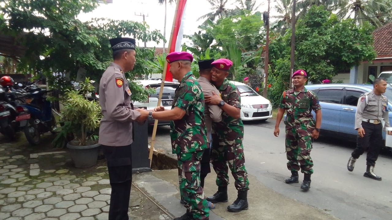 Dispen Kormar (Banyuwangi) - Pusat Latihan Pertempuran Marinir (Puslatpurmar)7 Lampon jalin sinergitas antara TNI- Polri dengan kehadirannya pada upacara dan syukuran peringatan hari ulang tahun Bhayangkara Ke-78 Tahun 2024 baik di tingkat Forkopimda maupun Forkopimka setempat yang di wakili oleh Pasiops Puslatpurmar 7 Lampon Mayor Marinir Agus A Fauzi dan perwakilan anggota.