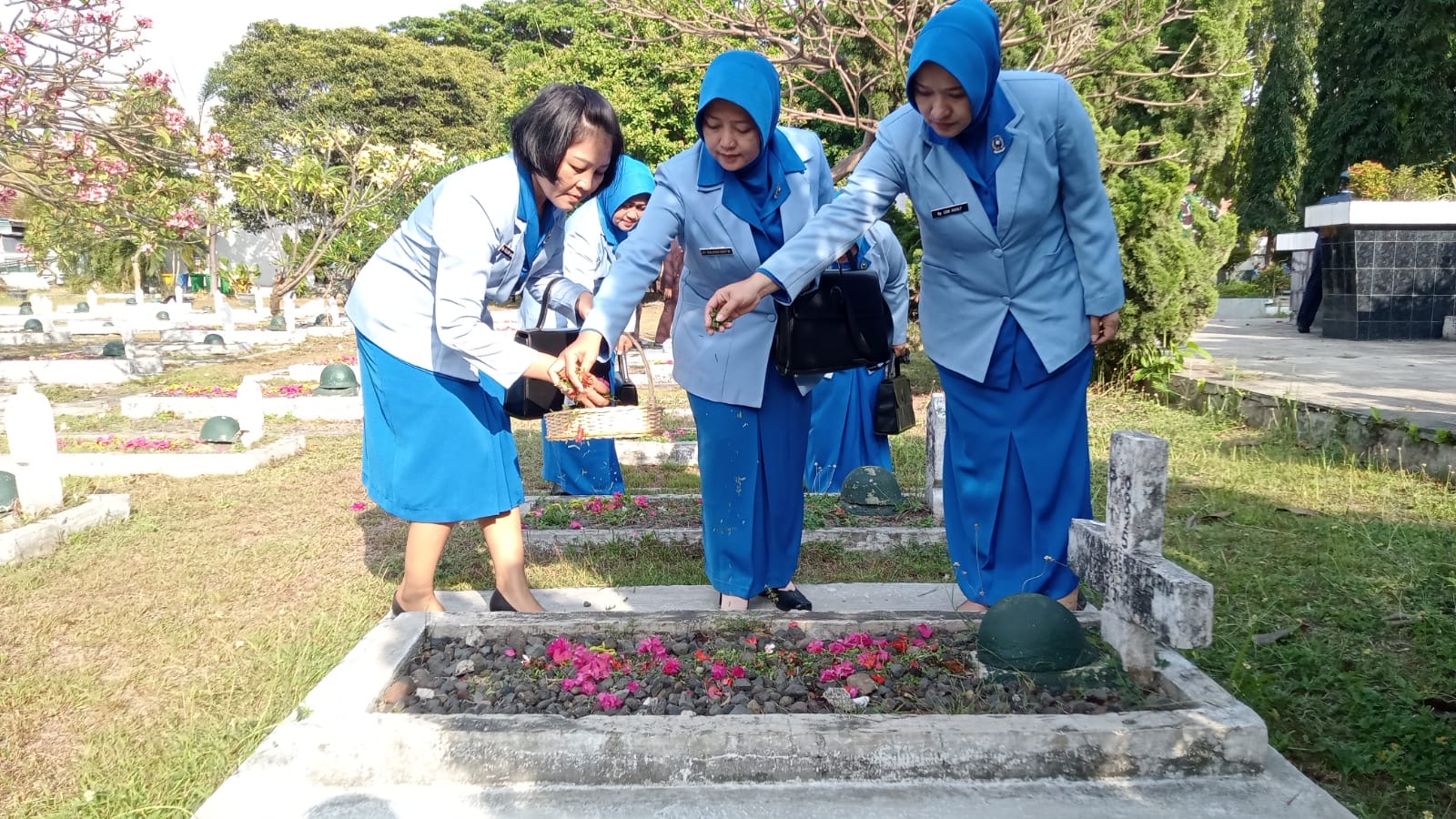 Dalam rangkaian upacara tersebut, peserta mengheningkan cipta sebagai bentuk penghormatan dan mengenang kepada jasa-jasa pahlawan bangsa kemudian dilakukan acara tabur bunga di makam-makan sebagai simbol penghargaan terhadap para pahlawan yang dilakukan oleh seluruh peserta upacara.