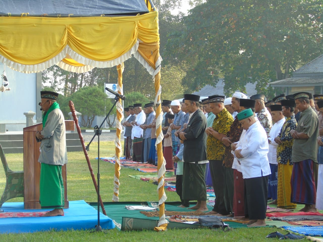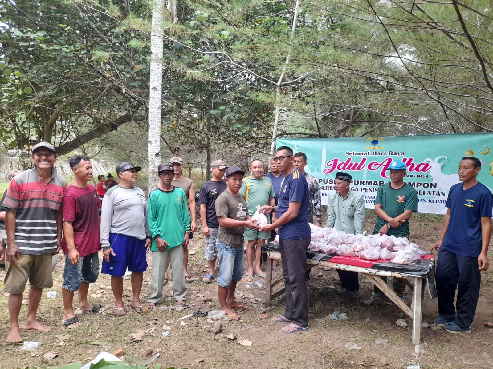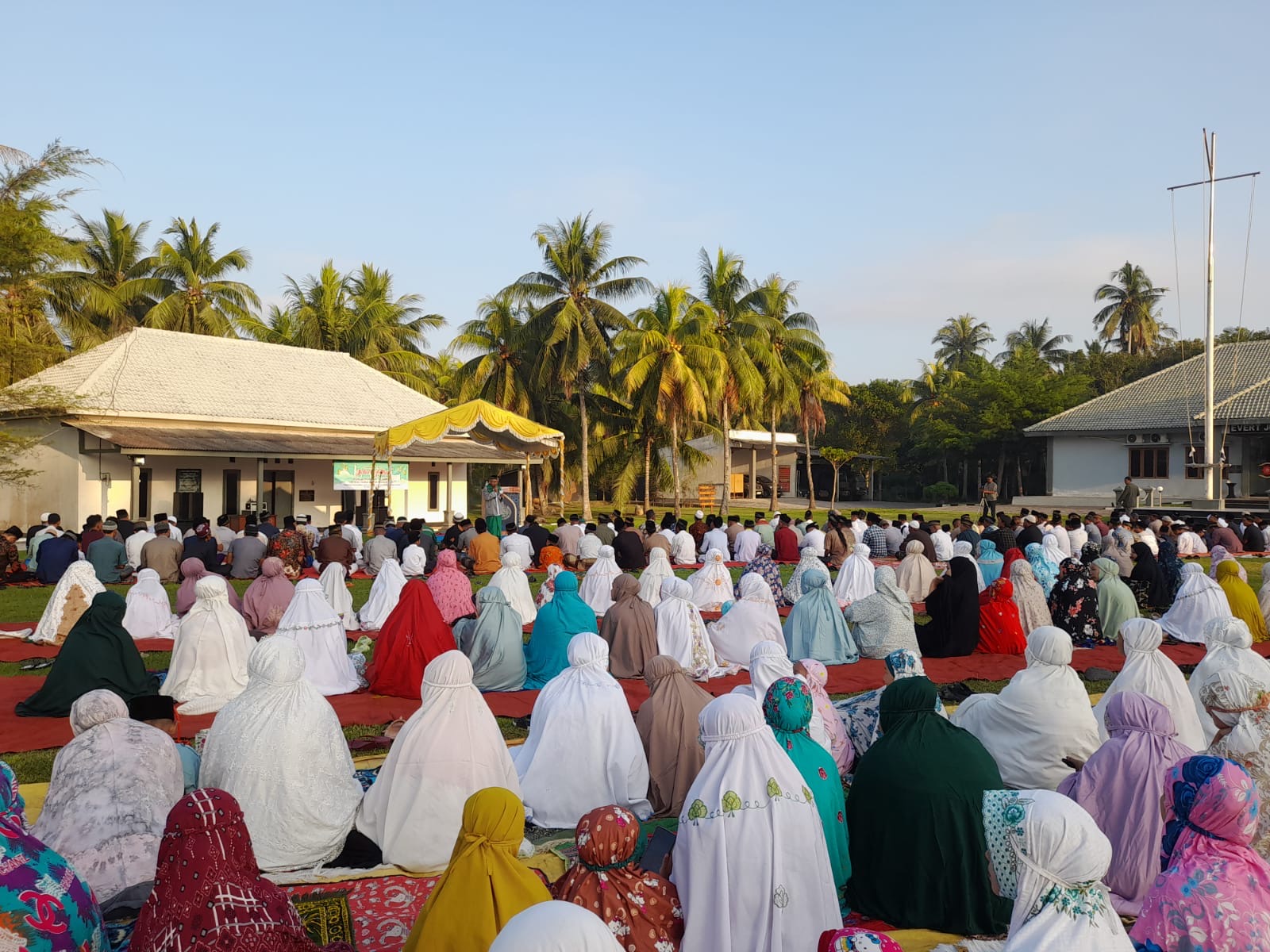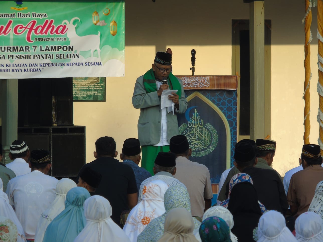 Bertindak sebagai Imam dan Khotib Sholat Idul Adha 1443 H. Kyai Moch Shahir yang diikuti jemaah anggota Puslatpurmar 7 Lampon, Pns dan masyarakat pesisir Kampungbaru Lampon dengan