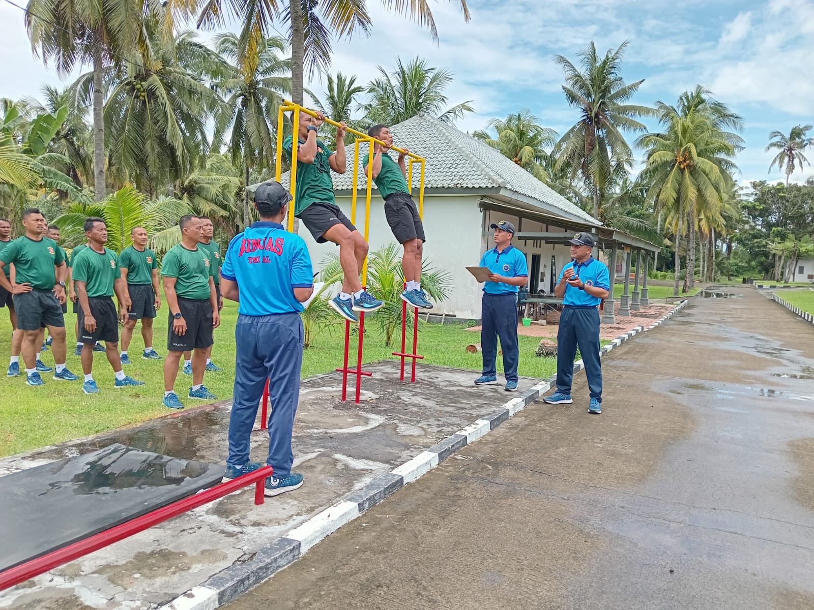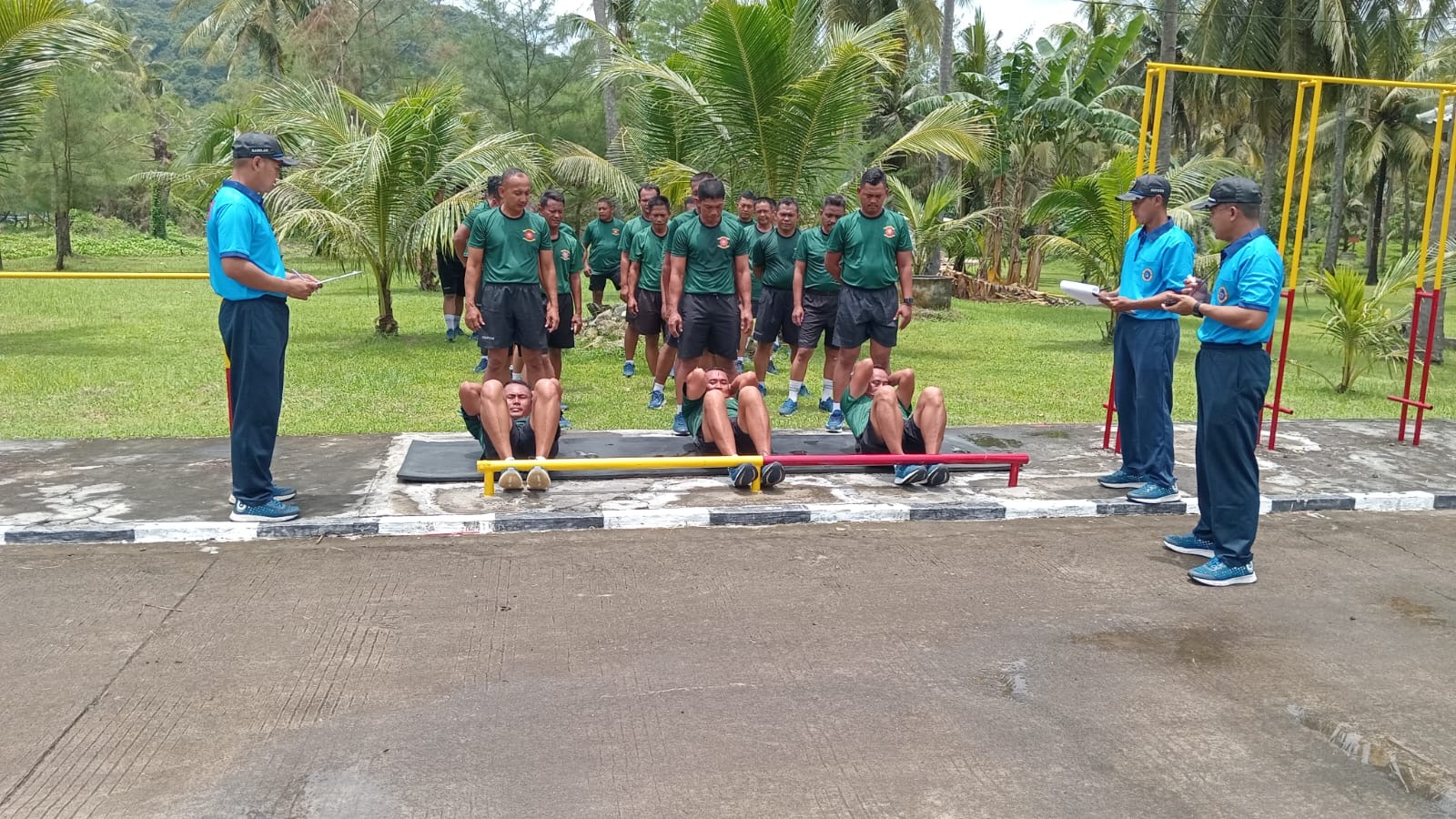 Dispen Kormar (Banyuwangi) - Seluruh Personil Puslatpurmar 7 Lampon mengikuti tes kesegaran jasmani (Garjas) periodik semester pertama TA 2025 di lapangan Mako Puslatpurmar 7 Lampon Dsn.Ringinsari Pesanggaran, Banyuwangi. Selasa (22/4/2025).