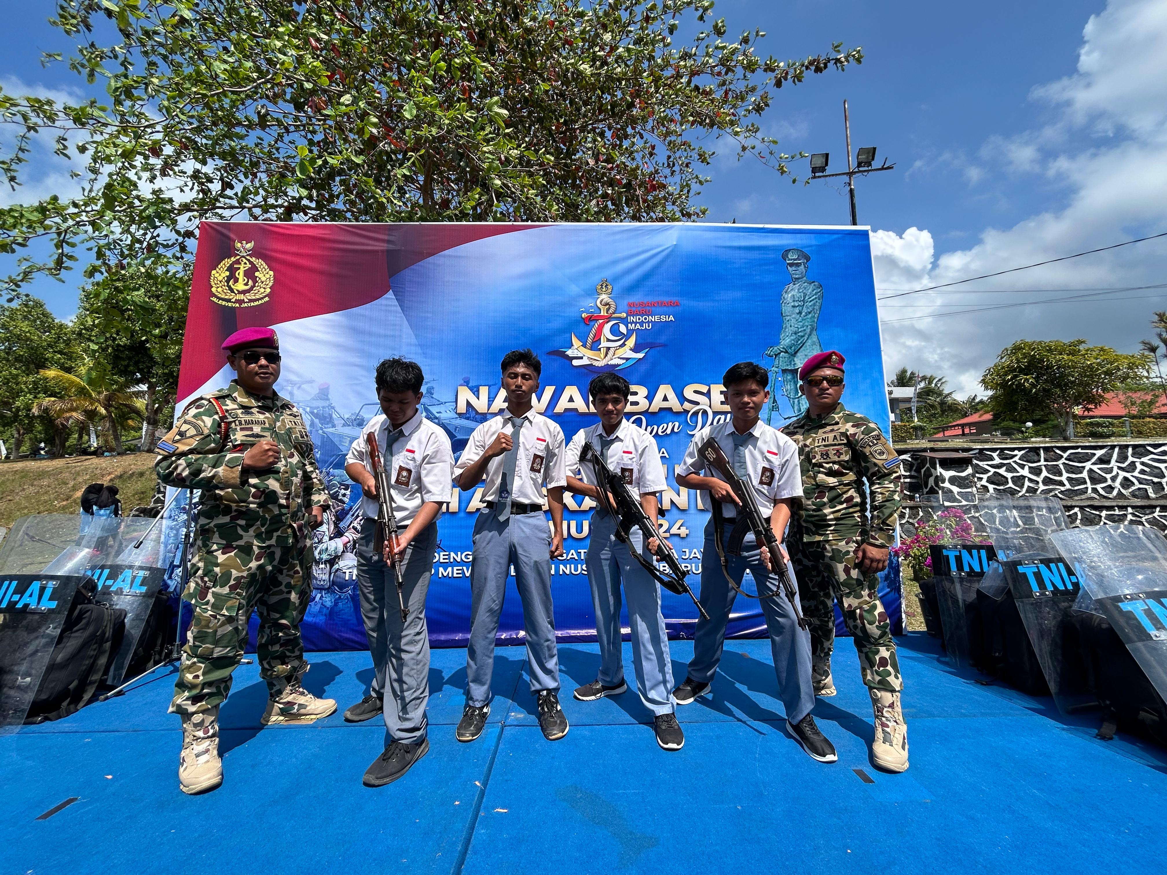 Acara Naval Base Open Day kegiatan yang ditujukan untuk masyarakat seperti bakti kesehatan, bakti sosial dan makan bergizi gratis serentak dalam rangka HUT ke- 79 TNI AL tahun 2024 "Dengan semangat Jalesveva Jayamahe TNI AL Siap Mewujudkan Nusantara Baru Indonesia Maju"