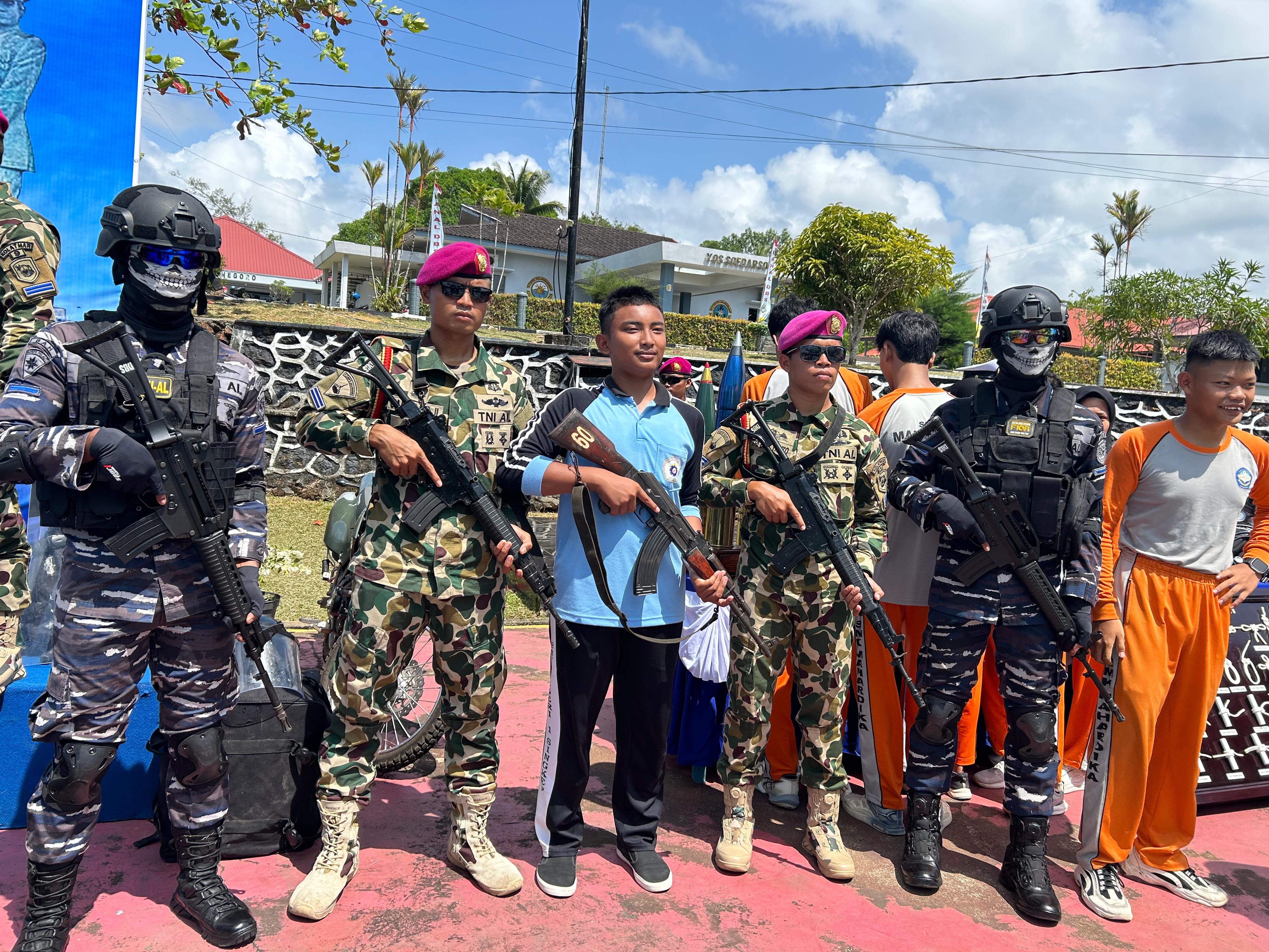 Dalam rangka kegiatan dengan tujuan merayakan hari besarnya prajurit TNI AL diseluruh penjuru busantara, prajurit pelatih Puslatpurmar 9 Dabo Singkep bersinergi dengan Lanal Dabo Singkep menggelar bakti sosial dan pengenalan TNI AL khususnya Marinir kepada generasi muda dengan semangat dan gembira, Lingga, Kepri, Sabtu