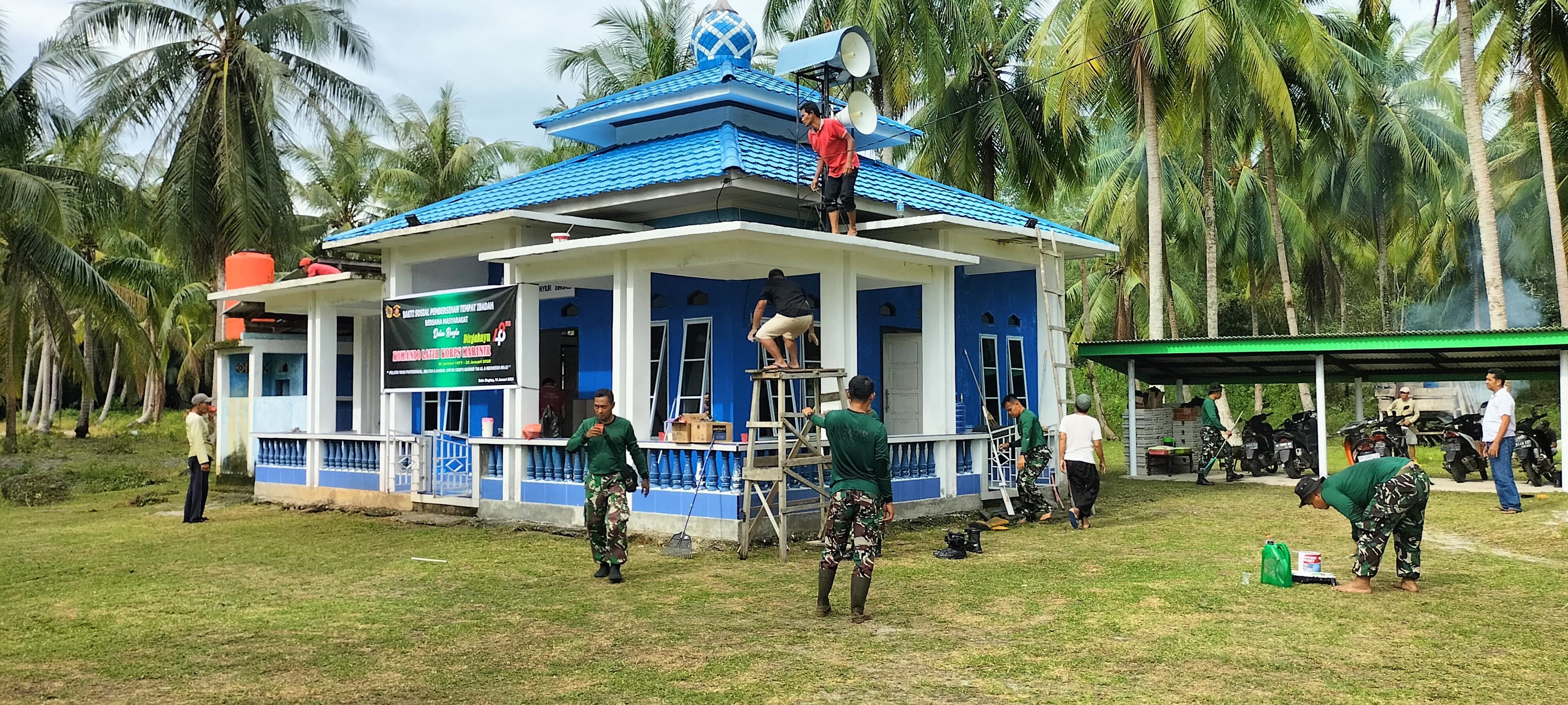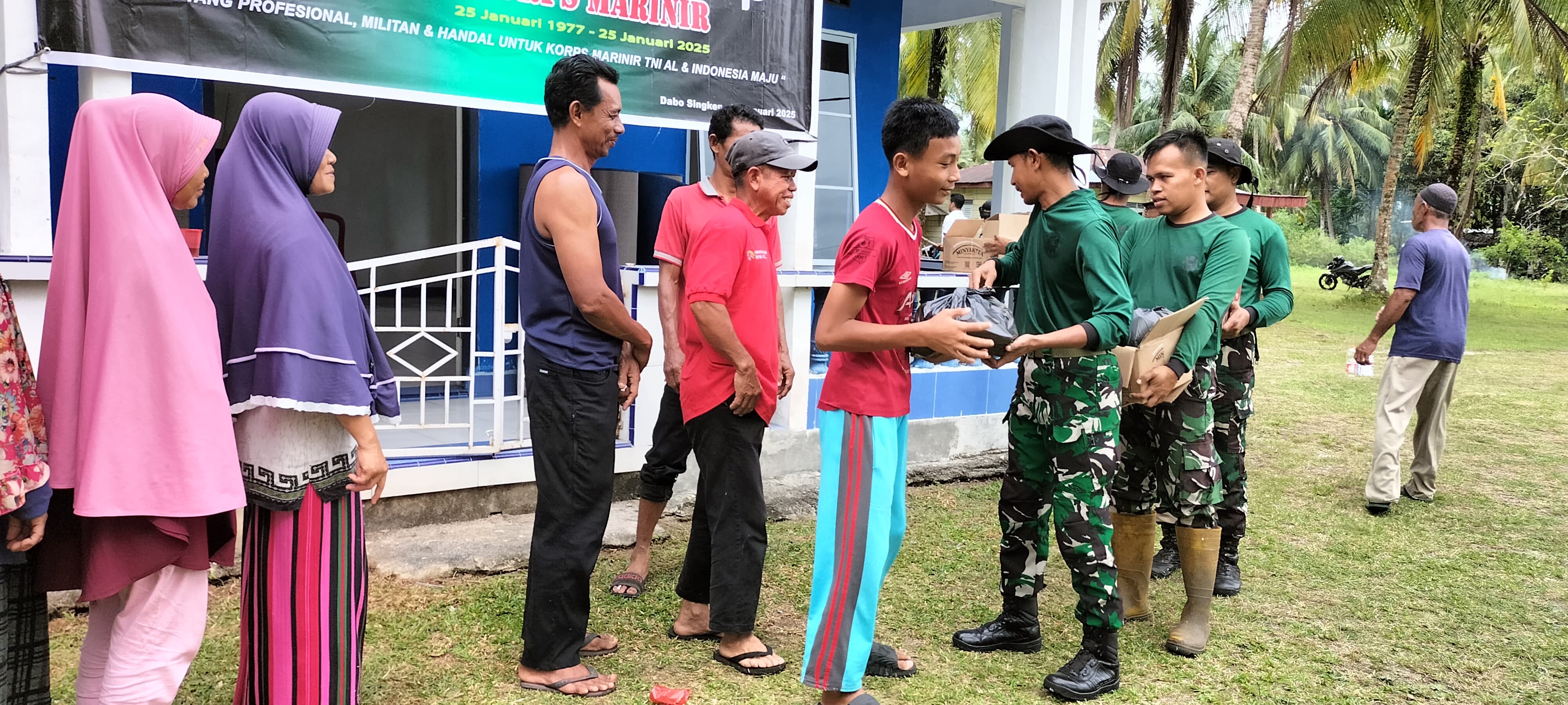 Dispen Kormar (Dabo Singkep) Dalam rangka memperingati HUT Ke- 48 Kolatmar dengan tema, Pelatih Yang Profesional Militan Dan Handal Untuk Korps Marinir TNI AL Dan Indonesia Maju, prajurit Puslatpurmar 9 Dabo Singkep melaksanakan karya bakti dengan sasaran tempat ibadah surau Al Ikhlas dan dilanjut dengan pemberian bingkisan kepada warga sekitar surau yang bertempat di Desa Persiapan Kebun Nyiur, Kab. Lingga, Selasa (14/01/2025).