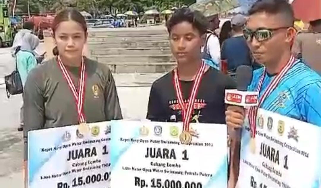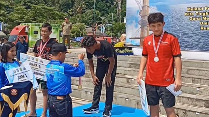 Pada kategori lomba renang laut jarak 1500 meter tanpa alat kelas umum ananda Sultan Anjasmara Prasetyo mewakili tim Kolatmar mampu mencatatkan waktu terbaik 25.05 menit dan menyabet juara satu.