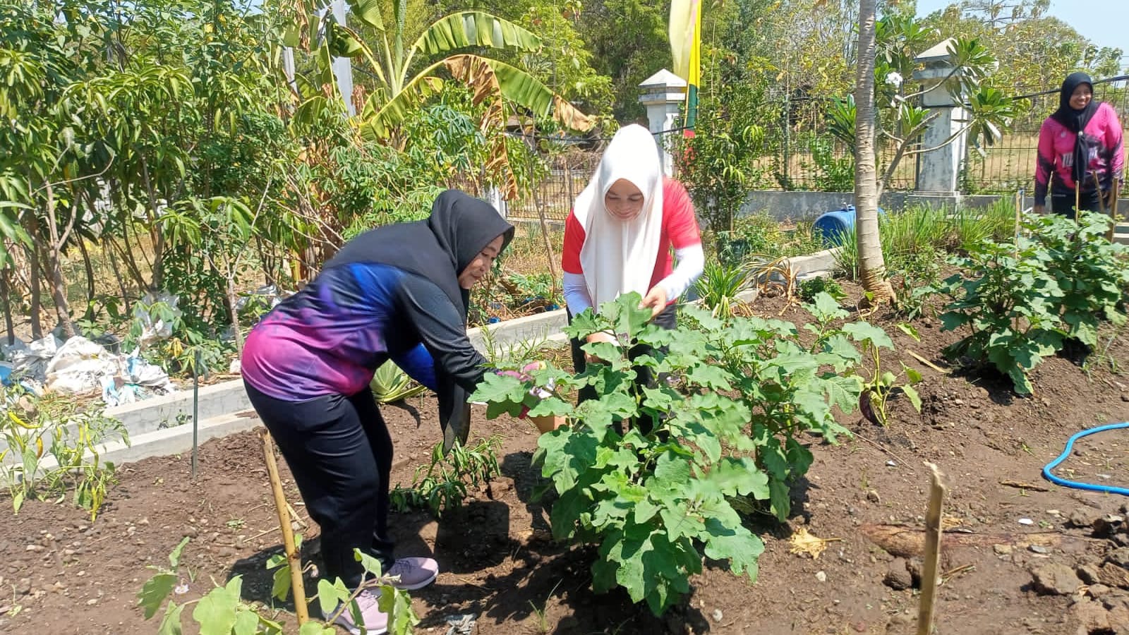 Ranting A dengan tanaman ketahanan pangan sayuran hidropinik, kol, cabe dan terong serta kolam ikan nila.