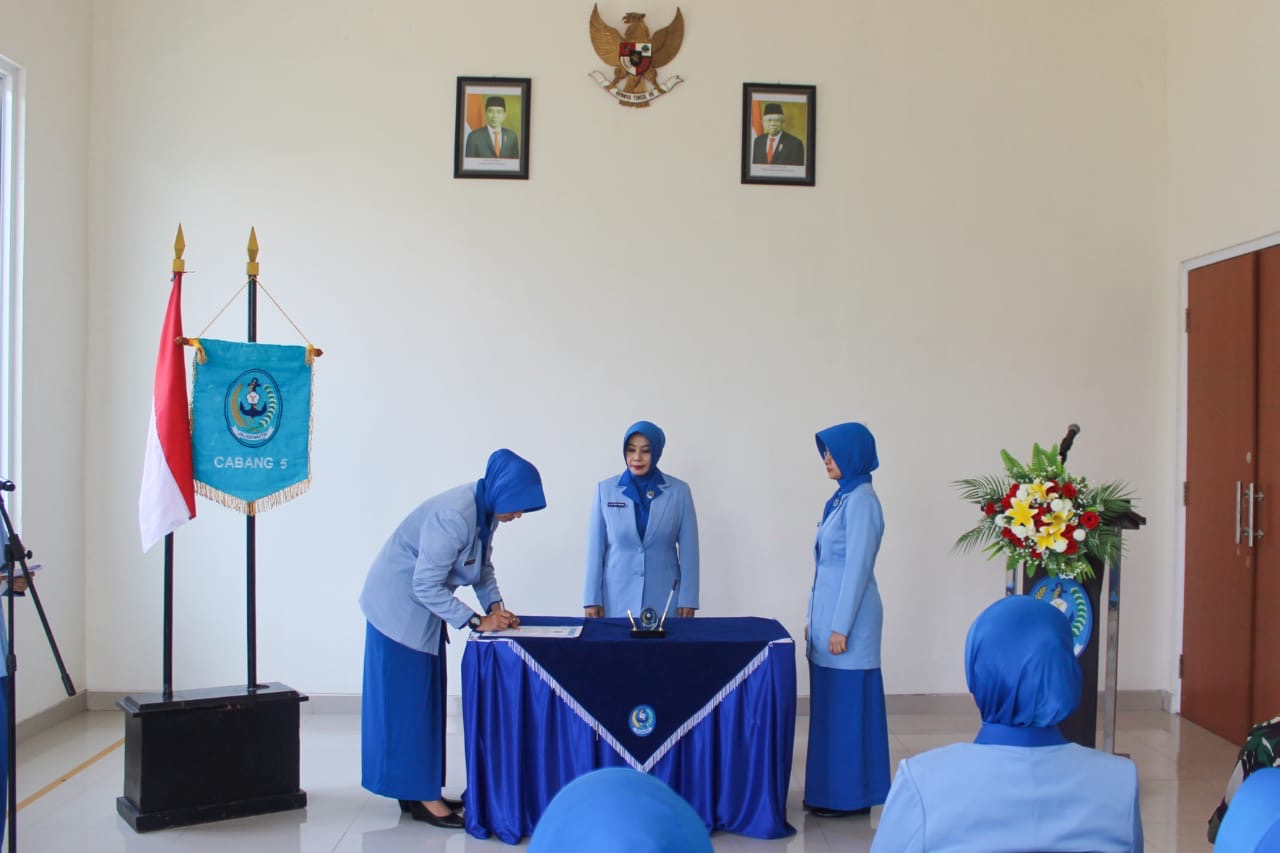 TNI AL, Dispen Kormar (Surabaya) - Ketua Cabang 5 Gabungan Jalasenastri Korps Marinir Ny. Evi Dede Harsana memimpin kegiatan Reorganisasi Pengurus Jalasenastri Cabang 5 PG Kormar serta pengangkatan dalam Jabatan Wakil Ketua Cabang 5 PG Kormar, bertempat di Kantor Jalasenastri Cabang 5 PG Kormar, Gunungsari, Surabaya, Selasa (08/10/2024).