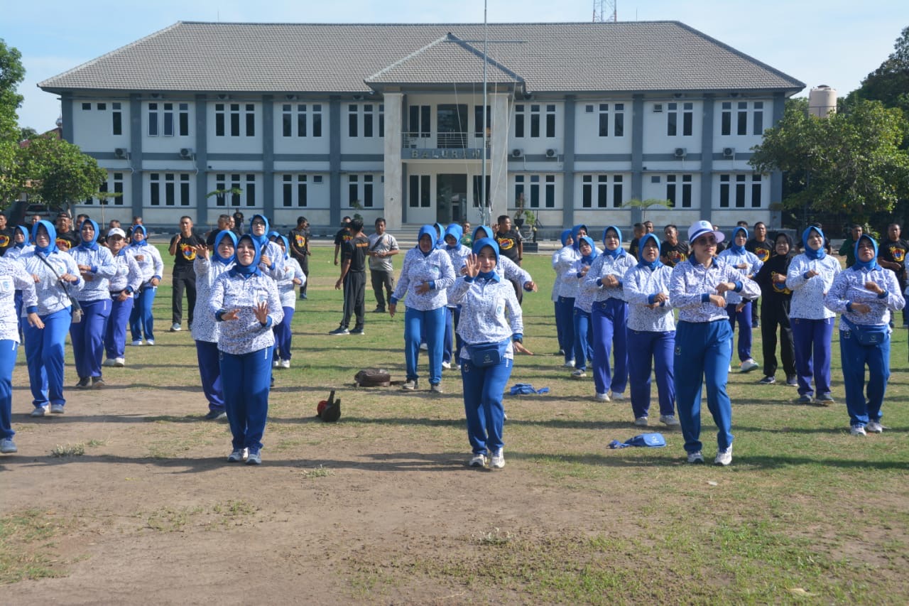 Dispen Kormar Situbondo - Dalam rangka menyambut Dirgahayu ke -79 Tentara Nasional Indonesia (TNI) tahun 2024, Jalasenastri Ranting E Cabang 5 PG Kormar melaksanakan pertemuan rutin sekaligus menggelar olah raga bersama, perlombaan gembira serta bazar Usaha Mikro, Kecil, dan Menengah (UMKM) anggota Jalasenastri Ranting E dilapangan Bola Pusat Latihan Tempur (Puslatpurmar) -5 Baluran. Ds Sumberwaru Kec Banyuputih kab Situbondo. Rabu, (2/10/2024).