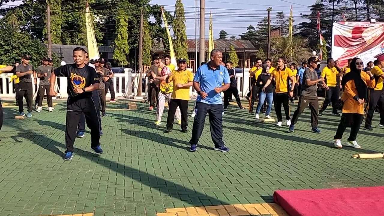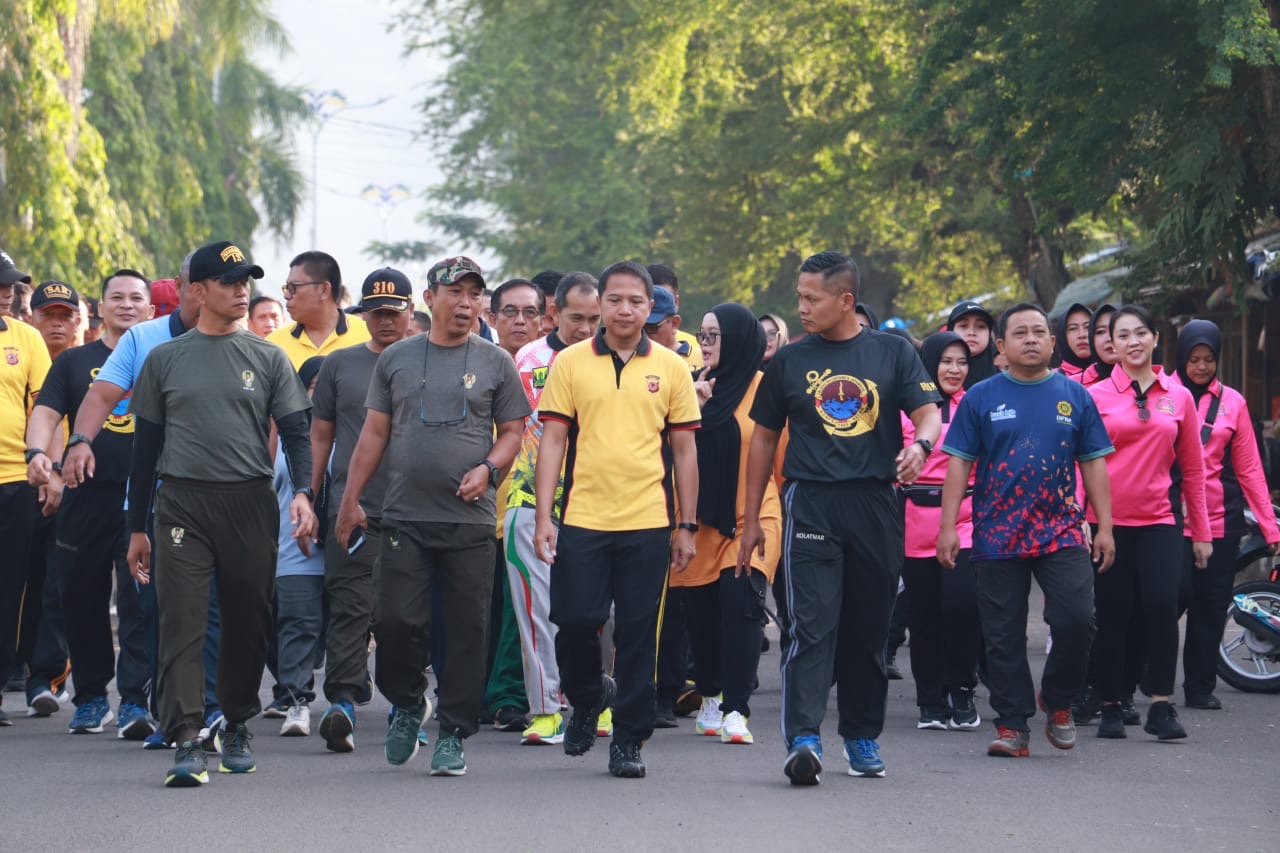 Olah raga bersama sebagai wujud syukur dalam rangka ulang tahun Bhayangkara ke-78 dan esensi untuk kebugaran kesehatan dan mempererat silaturahmi antar intansi, mari kita jalan bersama, jangan terburu-buru, santai, sambil kita ngobrol agar tercipta komunikasi yang baik, ujarnya.