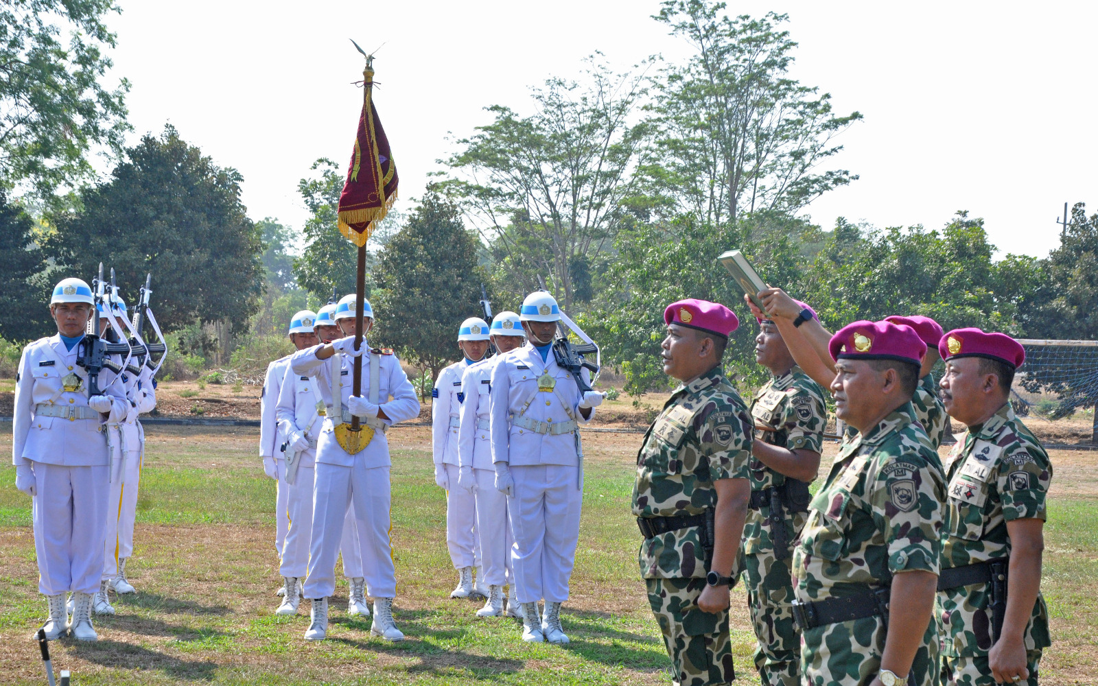 memimpin upacara serah terima jabatan Danpuslatpurmar 8 Teluk Ratai dari Letkol Marinir Achmad Toripin SAP, M.Han., M.Tr.Opsla kepada Mayor Marinir Hardi Mihendi. M.Tr.Opsla., dan Dankima Kolatmar dari Mayor Marinir Mulyanto kepada Mayor Marinir Nanang Setiawan yang digelar di Lapangan Mako Kolatmar Grati, Pasuruan, Rabu (09/10/2024).