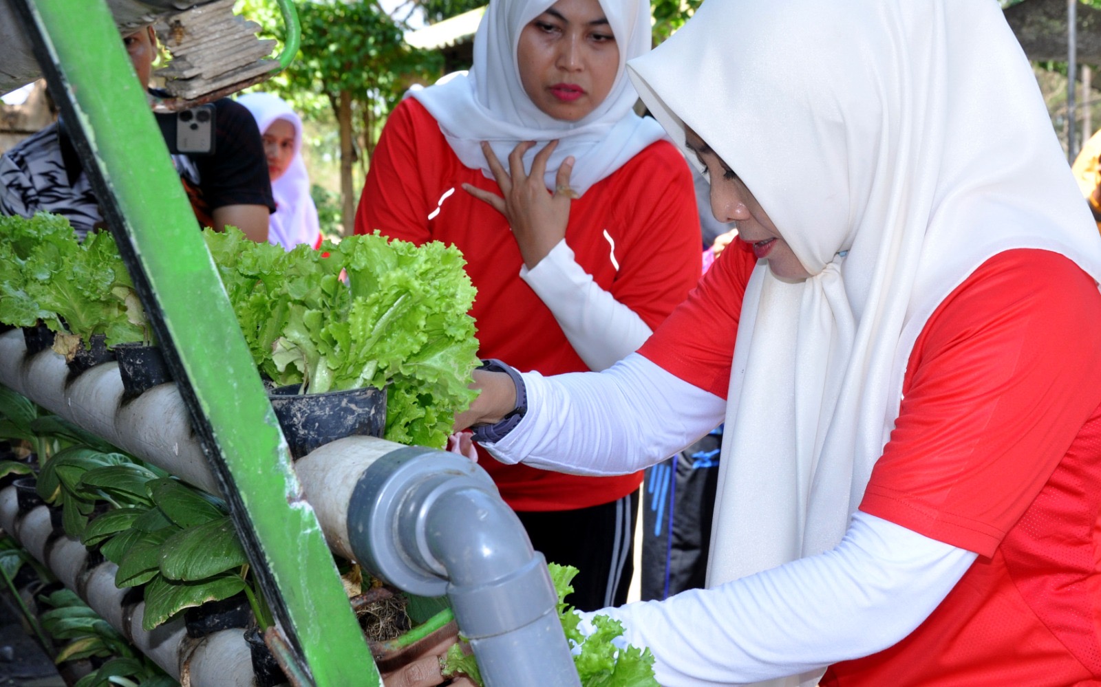 Dispen Kormar (Pasuruan). Silaturahmi Ketua Cabang 5 PG Kormar Ny. Evi Dede Harsana dan pengurus pada jajaran Ranting dibawahnya dalam rangka melihat langsung hasil ketahanan pangan yang selama ini dikelola oleh Ranting-Ranting Cabang 5 wilayah timur, diantaranya Ranting A, Ranting C dan Ranting F, dari Grati, Pasuruan, Rabu (14/08/2024).
