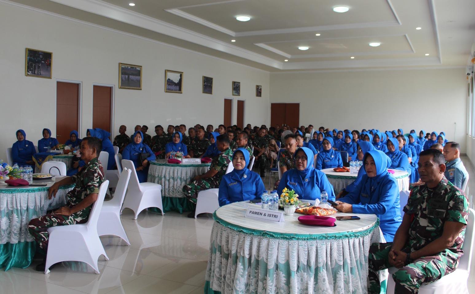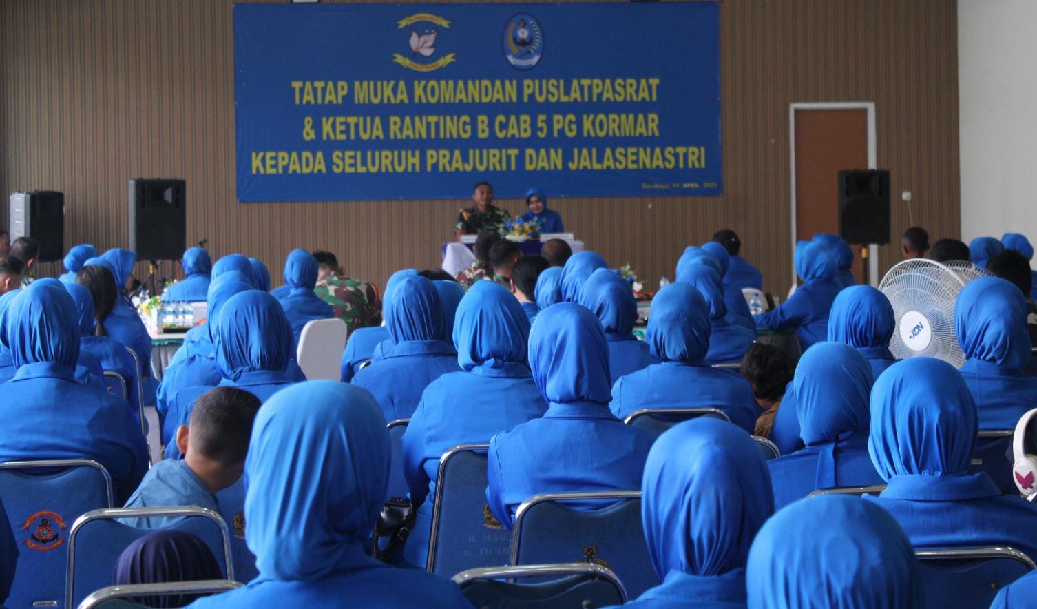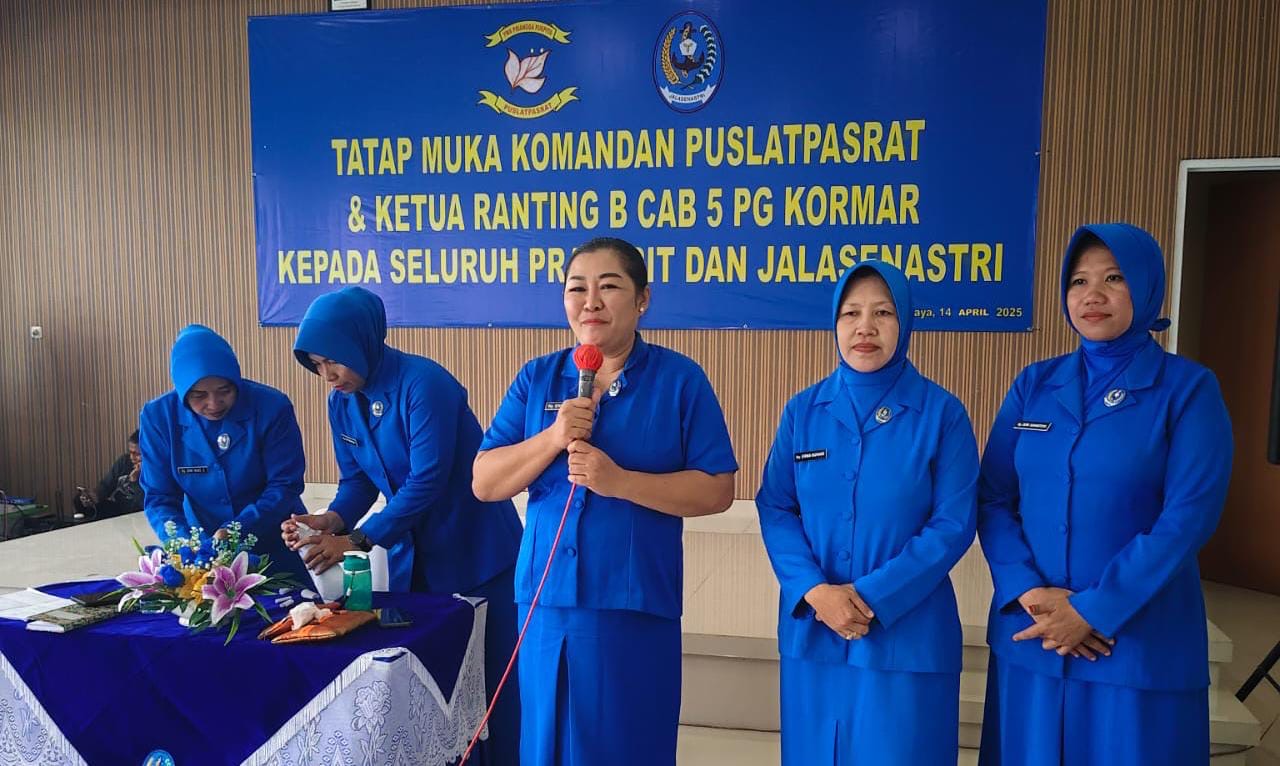 TNI AL, Dispen Kormar (Surabaya) PW : Komandan Puslatpasrat Mayor Marinir Nurdin M.Tr.Opsla., didampingi Ketua Ranting B Cab 5 PG Kormar Ny. Meril Nurdin melaksanakan tatap muka dengan seluruh prajurit dan anggota Jalasenastri di Gedung Olah Yudha (OYU) Kesatrian Marinir Ewa Panggalila, Gunungsari, Surabaya Senin (14/04/2025).