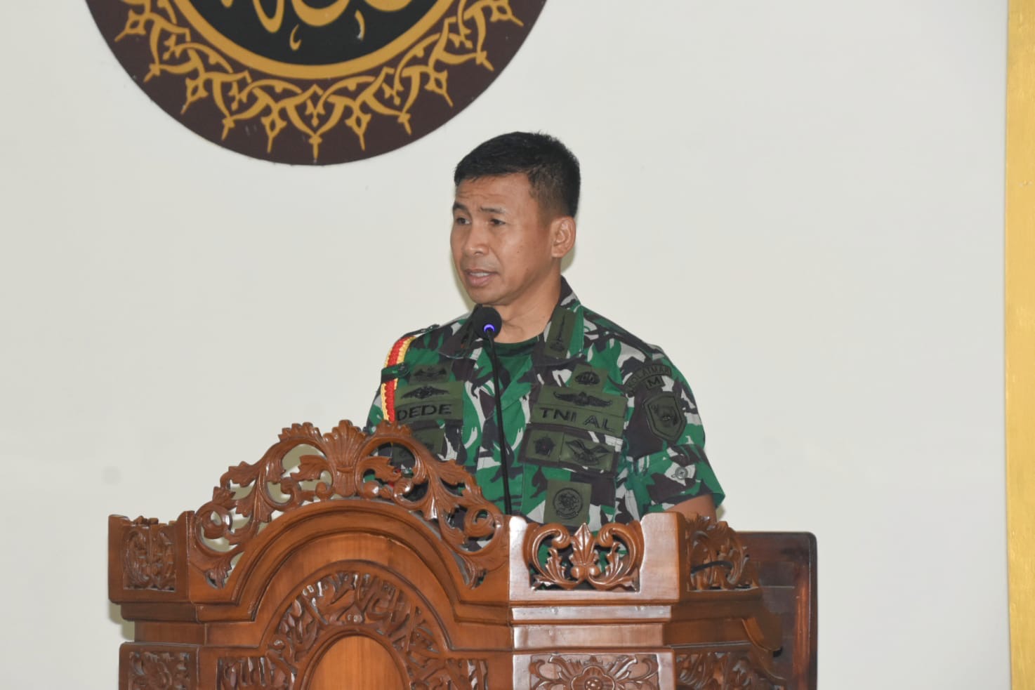 Dalam sambutannya, Komandan Kolatmar Kolonel Marinir Dede Harsana, S.A.P., M.Han, menyampaikan bahwa peringatan Maulid Nabi Muhammad SAW merupakan momentum untuk mengenang kembali kelahiran manusia termulia dan teragung di muka bumi yaitu Baginda Nabi Muhammad SAW, yang merupakan sosok teladan bagi umatnya. "Jadikan peringatan ini sebagai bahan musahabah diri, motivasi diri, dengan mengkaji kembali perjuangan Baginda Nabi kemudian berusaha mencontoh akhlak, sifat, dan ajarannya serta menerapkannya dalam kehidupan sehari-hari." Pesannya.