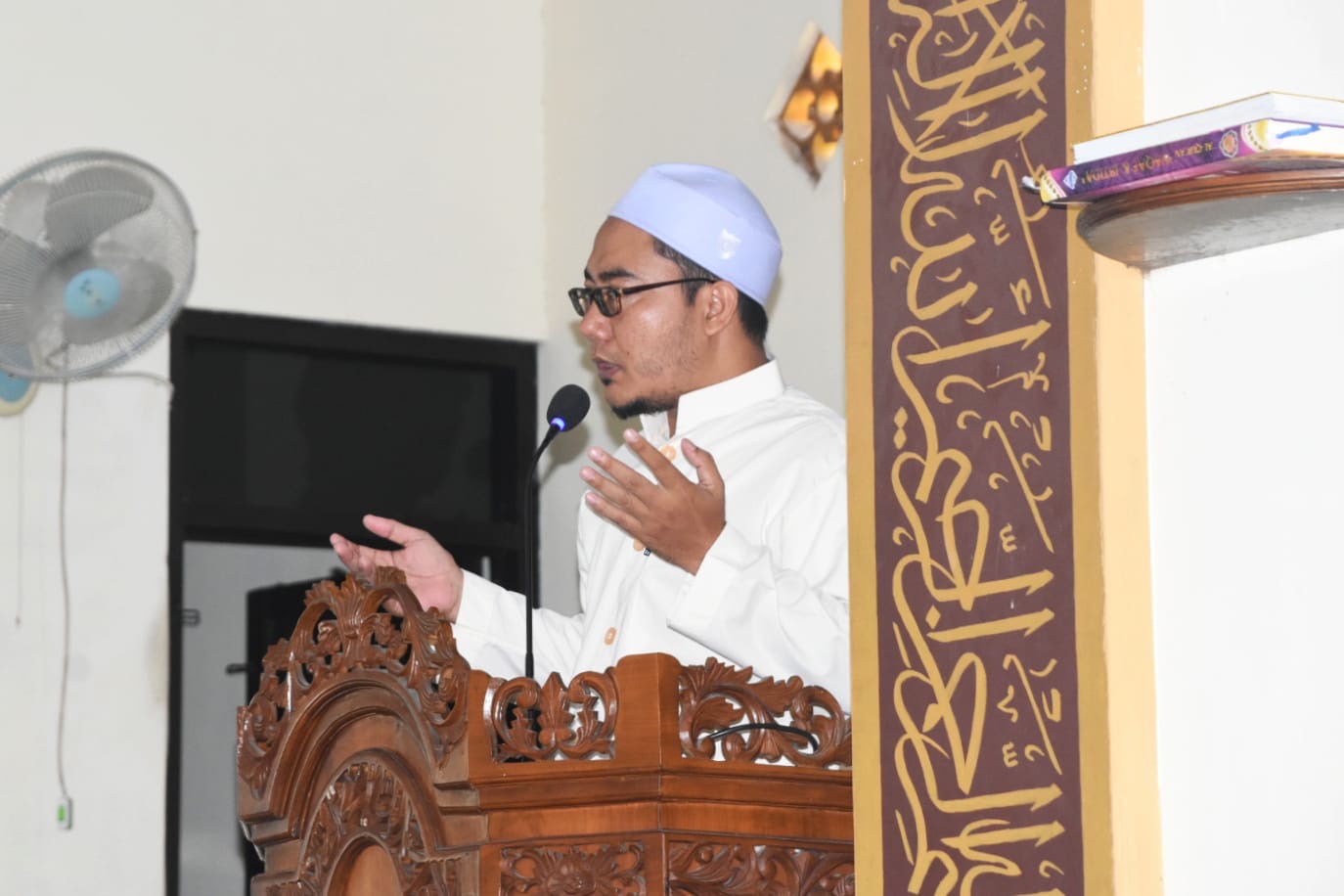 Sementara itu, Ustadz Ahmad Khusairi dalam ceramahnya menceritakan tentang kesempurnaan Nabi Muhammad SAW serta meneladani Nabi Muhammad dengan menjadi salah satu dari 4 golongan, yaitu jadilah orang yang alim, jadilah orang yang rajin mencari ilmu, jadilah pendengar setia (Kajian/ceramah), dan jadilah pecinta ilmu. â'Kita sebagai umat muslim Bukanlah sekedar merayakan tetapi juga komitmen untuk mengamalkan ajaran ajarannya dalam kehidupan sehari- hari, marilah kita tingkatkan ibadah, meningkatkan akhlak dan berusaha menjadi manusia yang bermanfaat bagi sesama.''