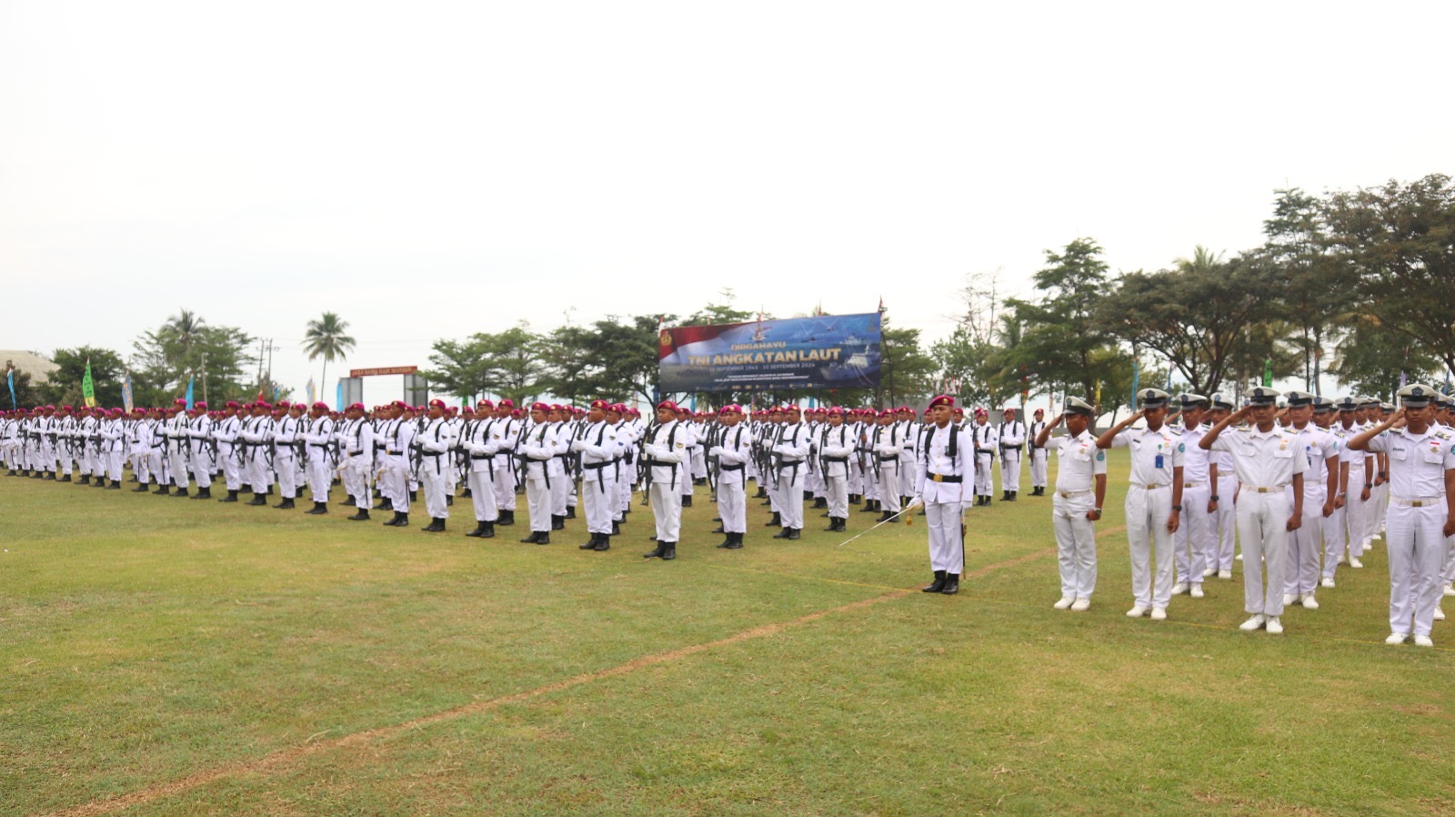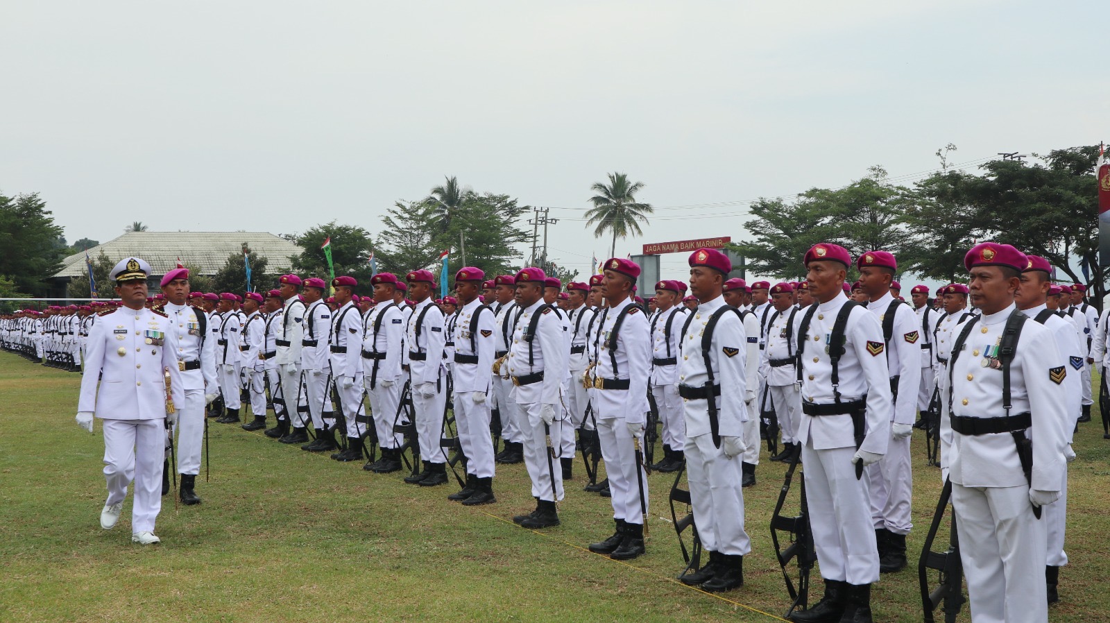 TNI AL, Dispen Kormar (Lampung)-Dalam rangka memperingati Hari Ulang Tahun (HUT) ke-79 TNI Angkatan Laut, Prajurit Puslatpurmar-8 Teluk Ratai melaksanakan upacara gabungan dengan Lanal Lampung, Brigif 4 Mar/BS dan SMK 6 Saka Bahari Bandar Lampung di lapangan apel Yonif 7 Mar Lampung. Selasa (10/09/2024).