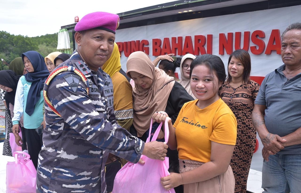 Pemberian paket sembako oleh Danpasmar 2 dan dilanjutkan pejabat lainnya kepada perwakilan masyarakat sekitar lokasi menutup acara.