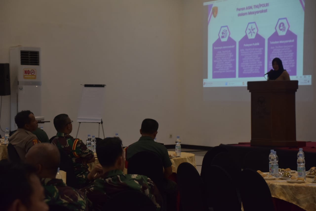 Acara berlanjut penyampaian Materi Netralitas ASN, TNI dan Polri dalam rangka persiapan pelaksanaan Pilkada serentak tahun 2024 yang disampaikan oleh Iptu Dr. Santi Wijaya, S.H , M.H. (Kanit Tipidkor Satreskrim Polres Pasuruan) dan Bpk. Diano Vela Verry, S. Sos., MA (Asisten Pemerintahan dan Kesejahteraan Rakyat Setda Kab. Pasuruan).